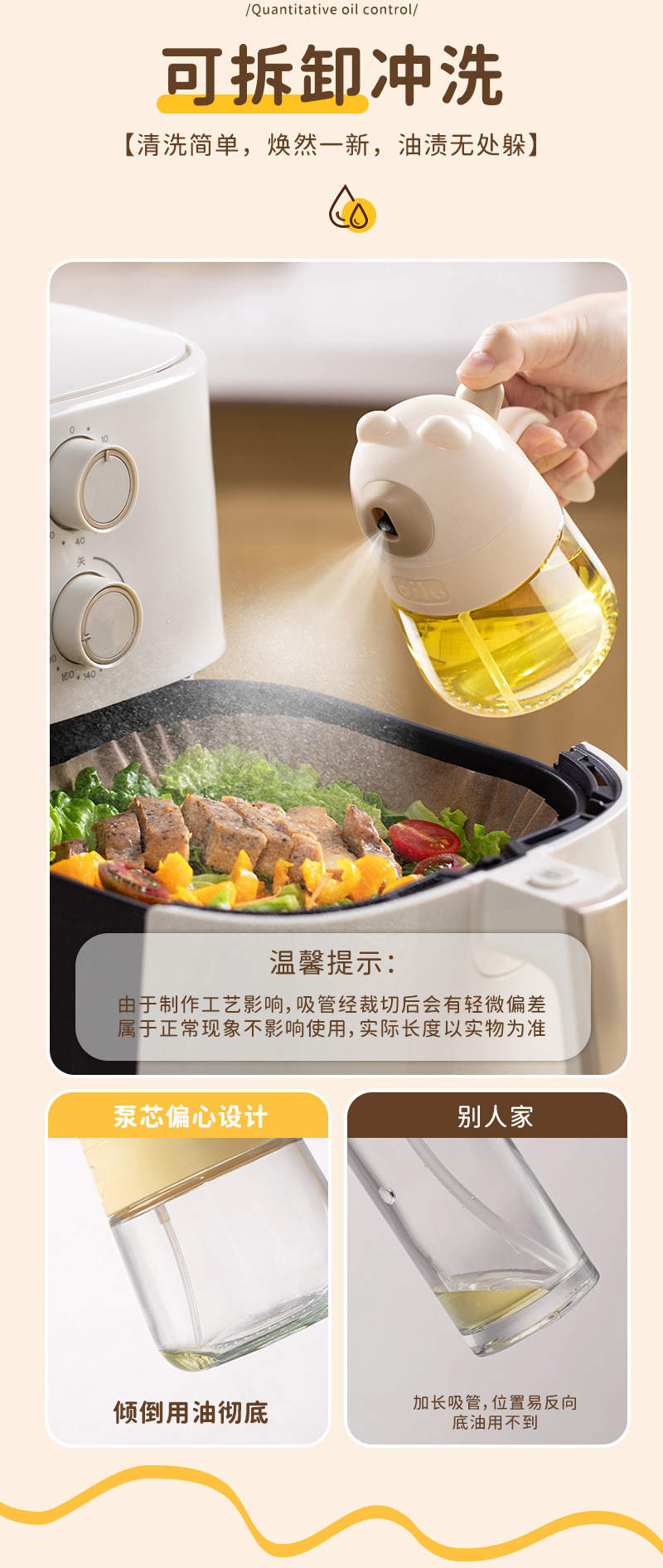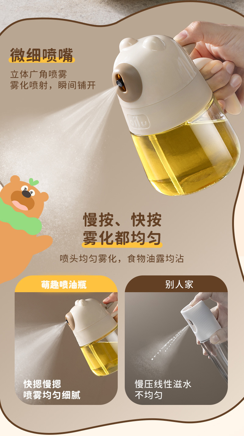 クマオイルスプレーボトルガラスキッチン家庭用エアフライヤーオイルスプレーボトル食用油スプレーボトル霧化ミストオイルタンク