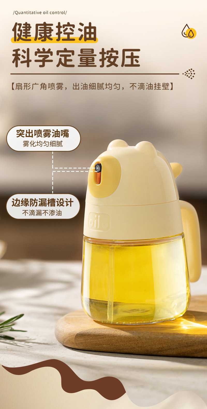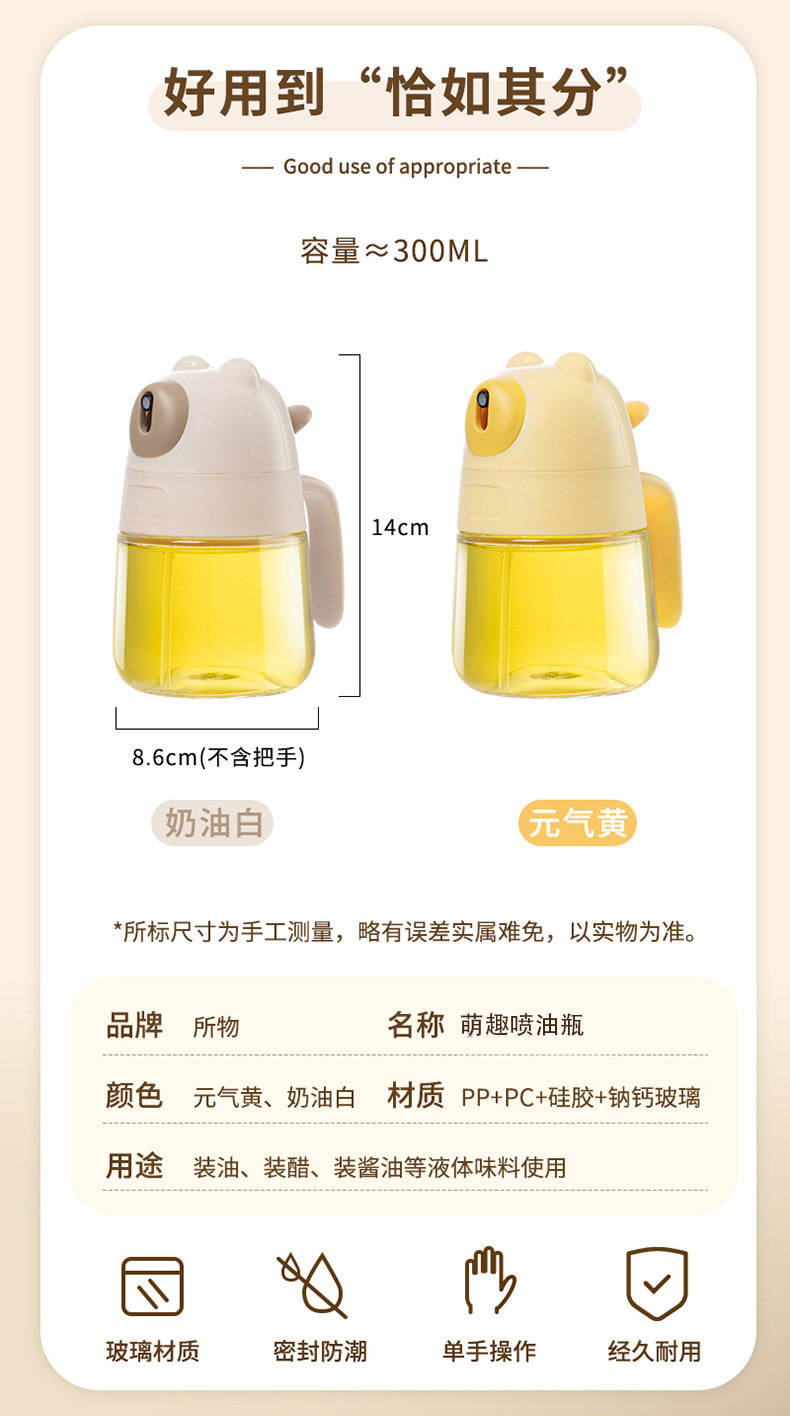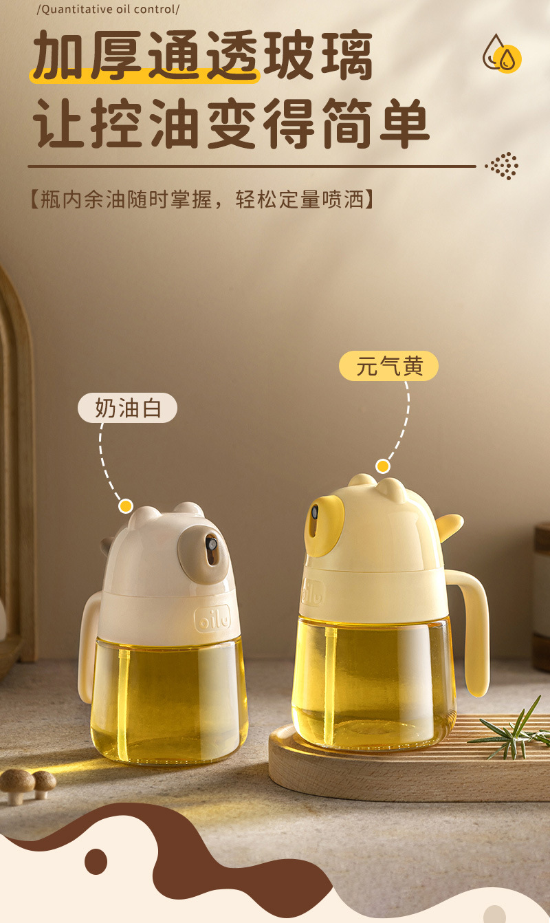 专利现货油壶新款家用卡通厨房食品级加厚玻璃雾化按压喷油壶定制