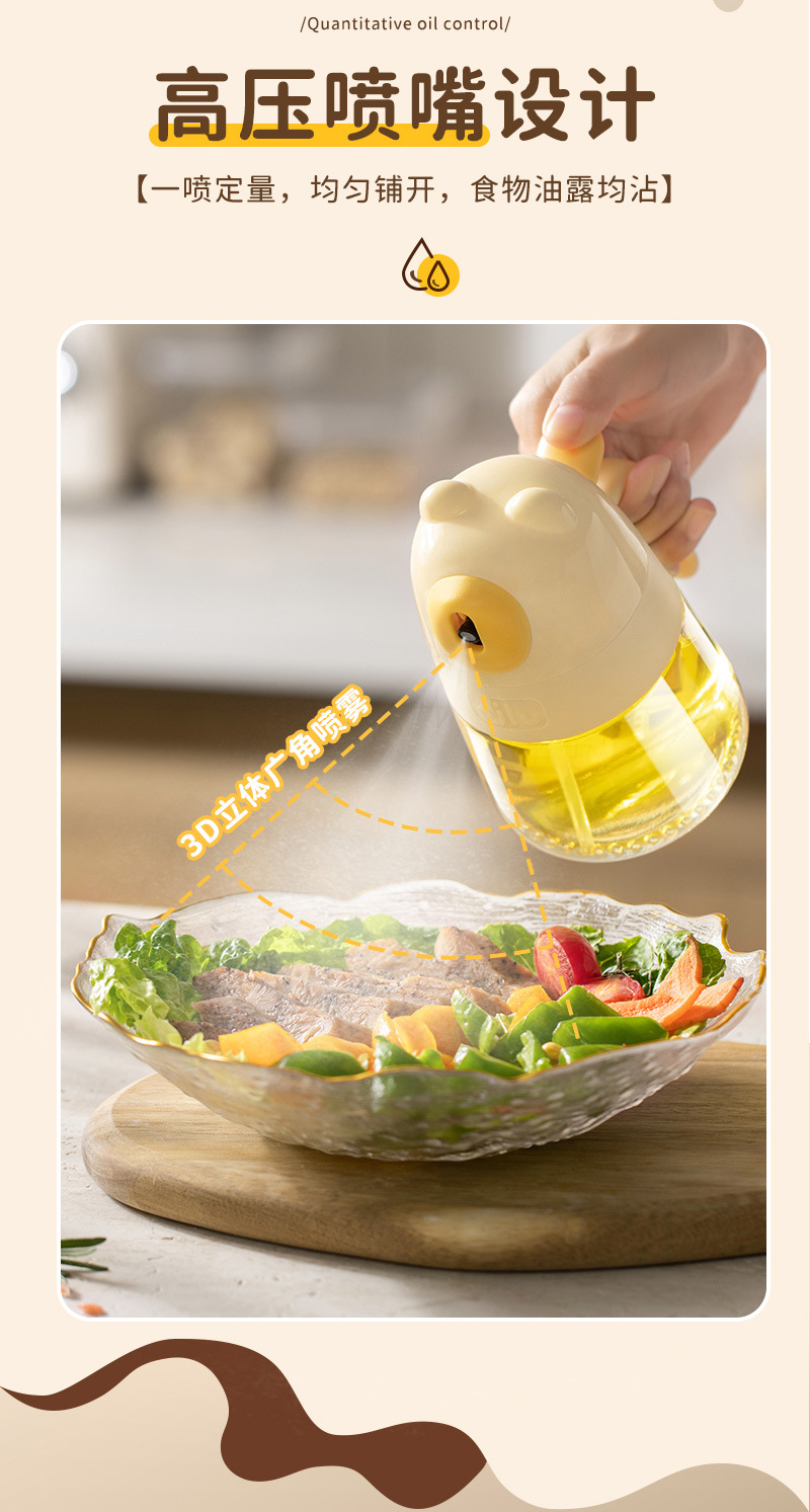 熊押し式噴射瓶霧化噴射壺家庭用食品級厨房空気フライヤーガラス定量油壺