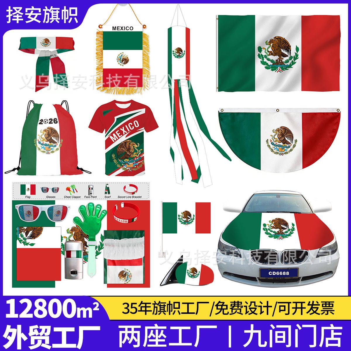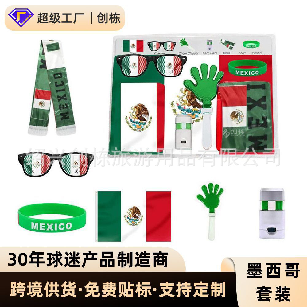 2026世界杯球迷套装墨西哥涤纶围巾眼镜手环拍拍手脸彩头巾旗帜