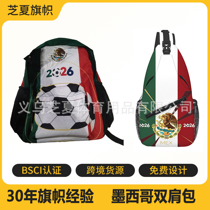 亚马逊 新款2026美加墨世界杯足球运动双肩包墨西哥球迷收纳背包