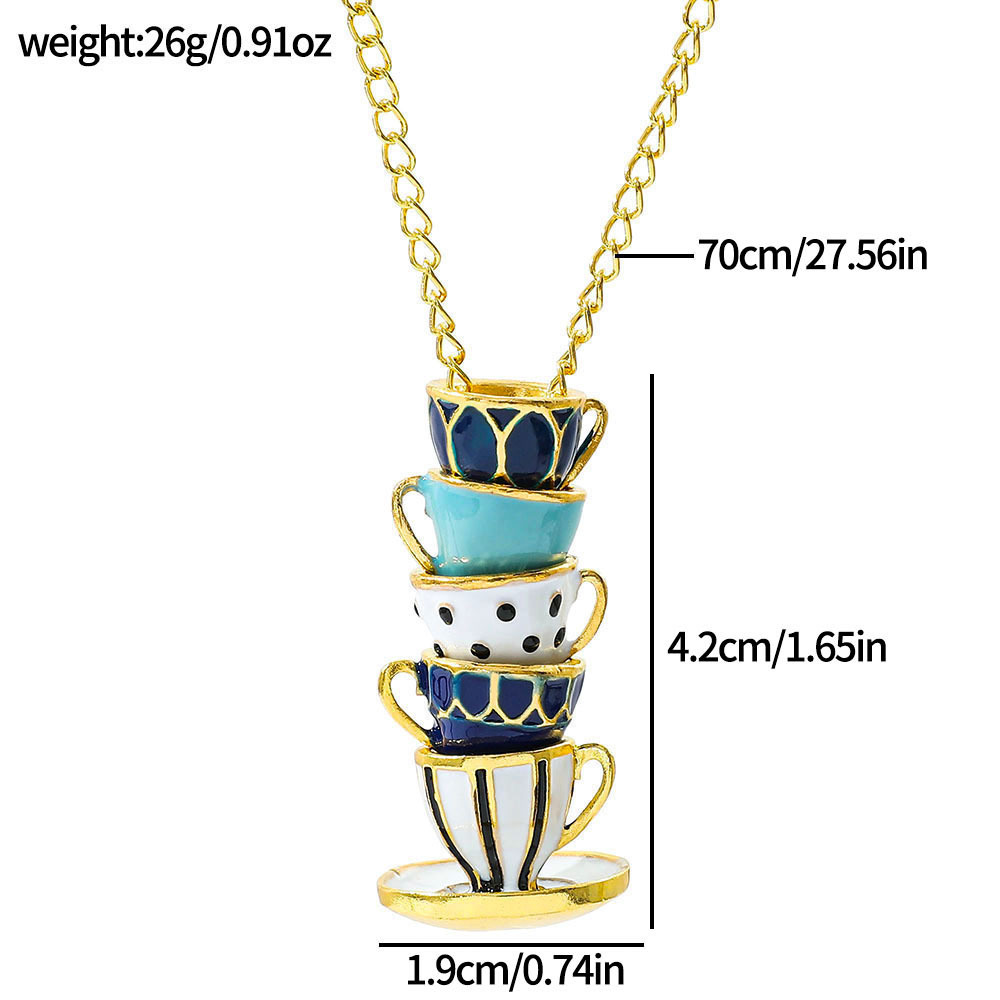 ヨーロッパとアメリカのファッションブランド売れ筋ジュエリー卸売エナメル釉薬ティーカップイヤリングロングネックレスセーターチェーンジュエリー