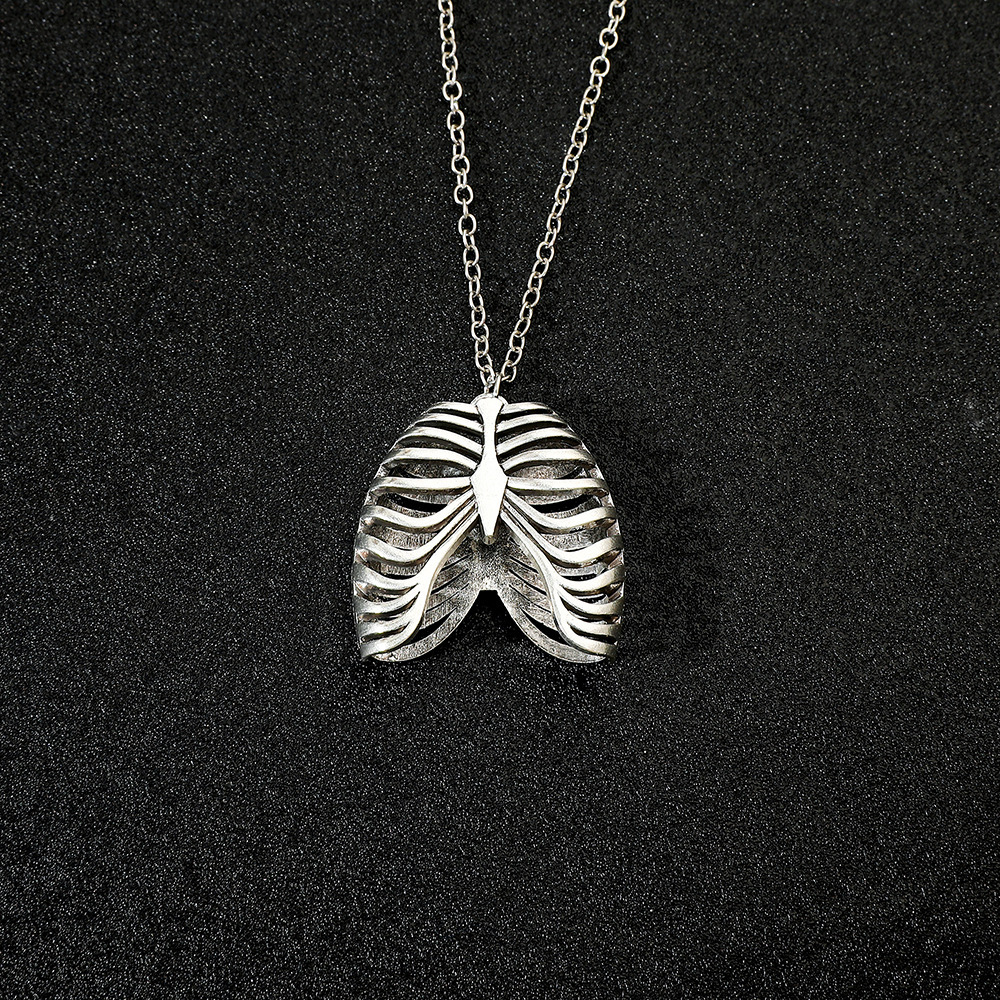 人間の胸骨スカルネックレスパーソナライズされた肋骨ハート合金解剖学的ミニジュエリーハロウィンギフトオールドマネースタイル