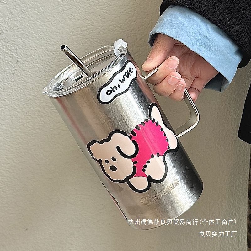 网红316不锈钢拎拎壶保温杯双饮大肚杯子户外便携大容量吸管水杯