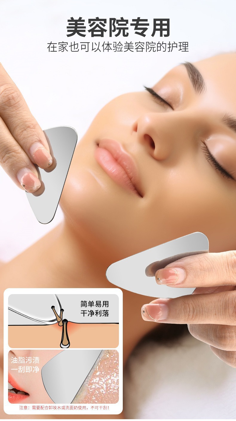 超薄黒頭スクレーパーステンレスハート型スクレーパー顔毛包清潔術三角形黒頭スクレーパー黒頭