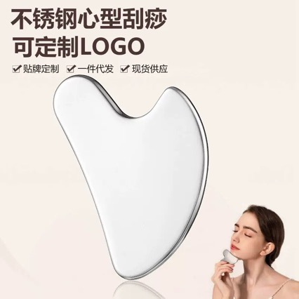不锈钢大号心形脸部刮痧板面部紧致提拉按摩板筋膜刀多功能刮痧板