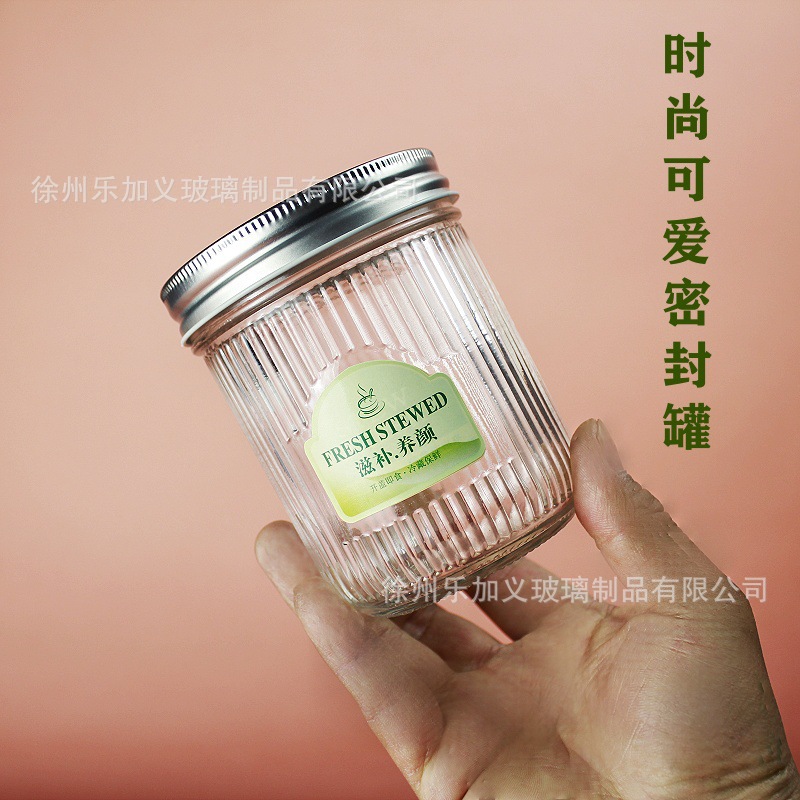 批发竖纹玻璃罐奶冻燕窝瓶鲜炖花胶鱼胶银耳分装瓶密封蜂蜜酱菜瓶