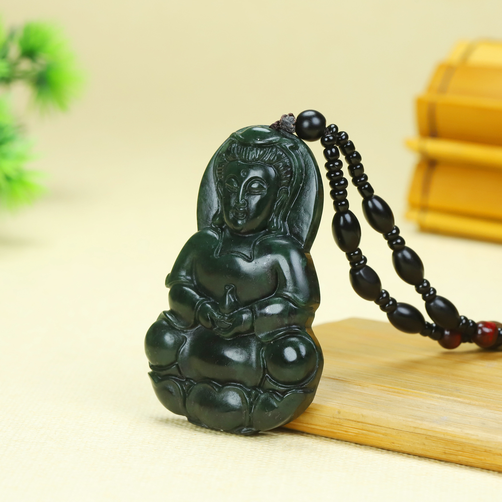薬王石蛇紋石翡翠観音ペンダント男性と女性のボトル観音翡翠ペンダント