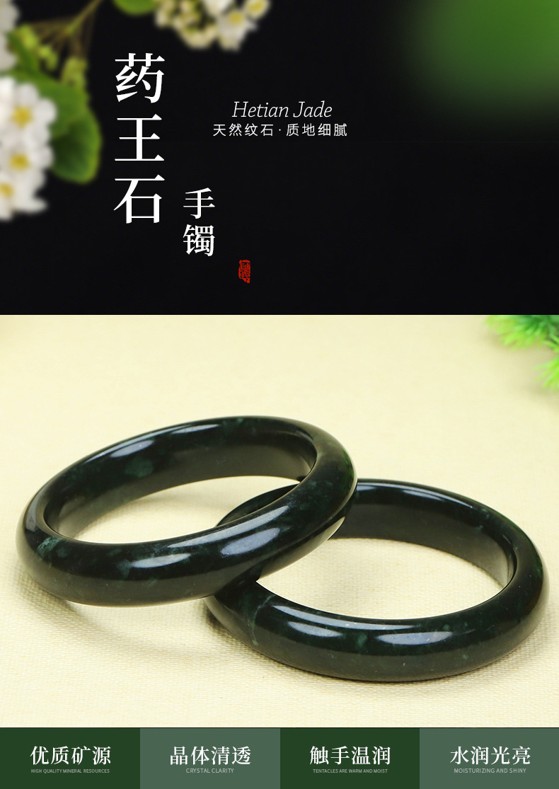 メーカーは、女性用の天然薬王石ブラックバグコンワイドブレスレット、家族や友人への翡翠ブレスレットを大量に卸売しています。