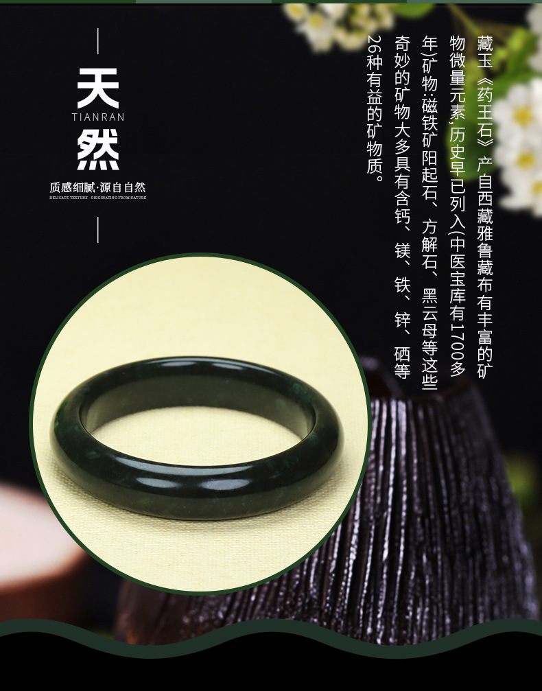 天然薬王石ブレスレット磁気高氷種チベット玉平安腕輪保健チベット逸品玉腕輪子墨緑玉腕輪