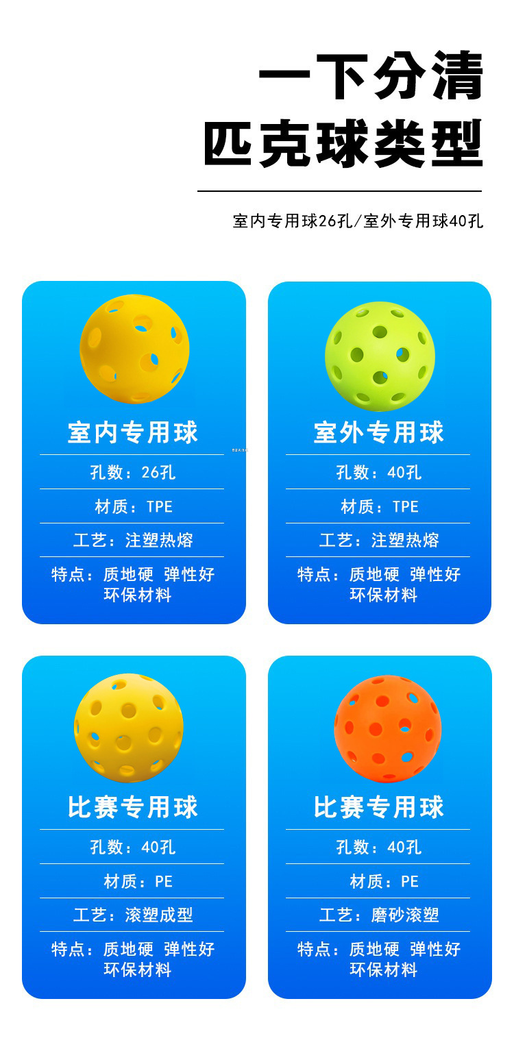 安定耐打匹克球Pickleball74mm40穴26グラム威浮穴球匹克球