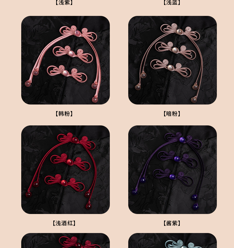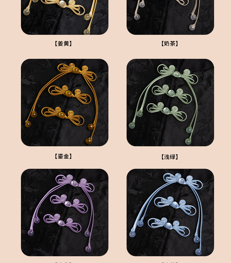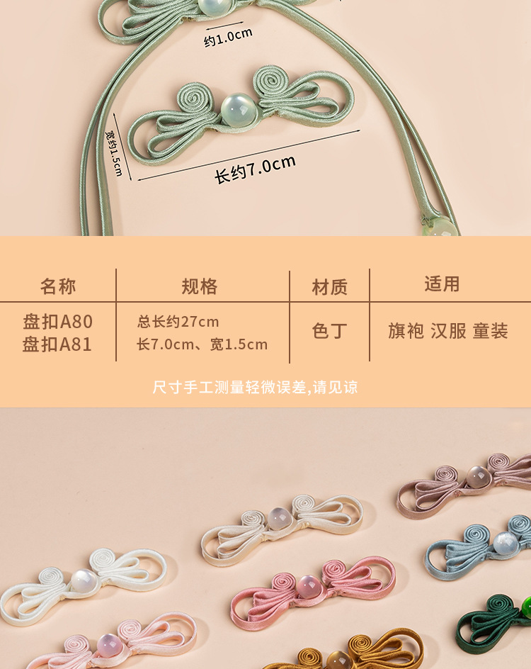 规格型号 盘扣A80【1-杏色】,盘扣A80【2-桔粉】,盘扣A80【3-姜黄】,盘扣A80【4-奶茶】,盘扣A80【5-鎏金】,盘扣A80【6-浅绿】,盘扣A80【7-浅紫】,盘扣A80【8-浅蓝】,盘扣A80【9-韩粉】,盘扣A80【10-暗粉】,盘扣A80【11-浅酒红】,盘扣A80【12-酱紫】,盘扣A80【13-酒红】,盘扣A80【14-灰蓝】,盘扣A80【15-墨绿】,盘扣A80【16-黑色】,盘扣A81【1-杏色】,盘扣A81【2-桔粉】,盘扣A81【3-姜黄】,盘扣A81【4-奶茶】,盘扣A81【5-鎏金】,盘扣A81【6-浅绿】,盘扣A81【7-浅紫】,盘扣A81【8-浅蓝】,盘扣A81【9-韩粉】,盘扣A81【10-暗粉】,盘扣A81【11-浅酒红】,盘扣A81【12-酱紫】,盘扣A81【13-酒红】,盘扣A81【14-灰蓝】,盘扣A81【15-墨绿】,盘扣A81【16-黑色】