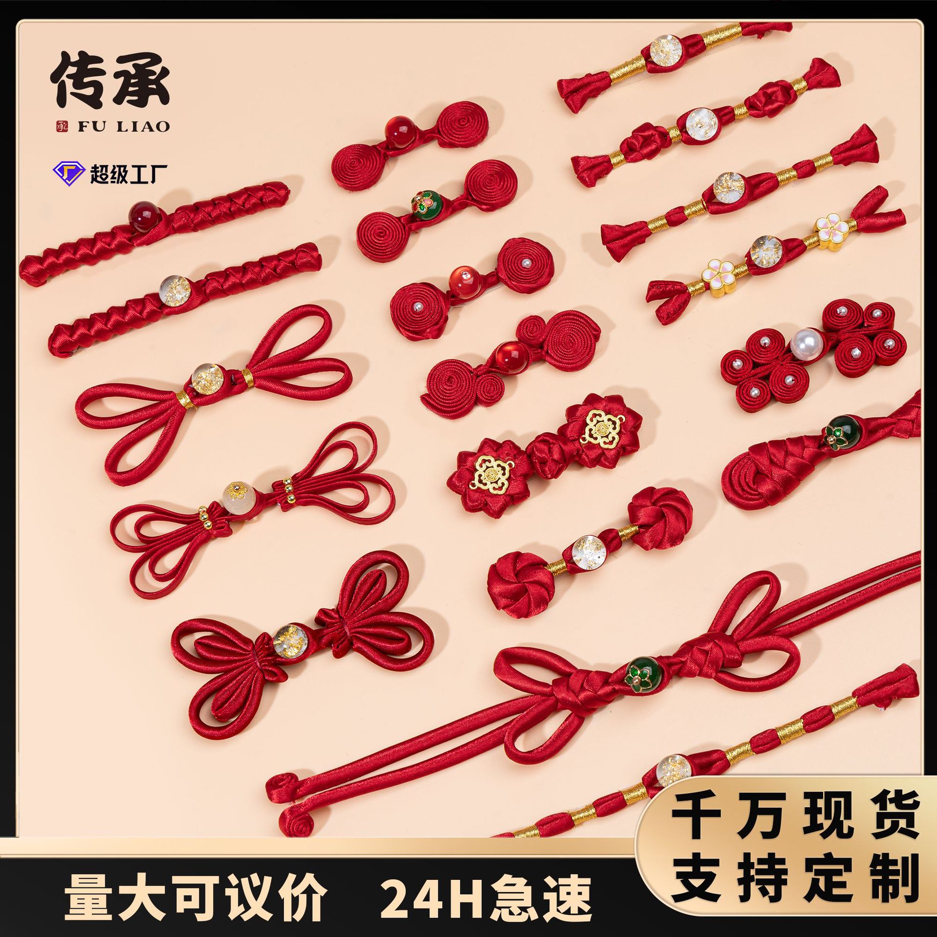 チャイナドレス盤ボタン盤新年赤い国風玉珠流蘇ボタン復古手作り新中国式漢服装飾ボタン