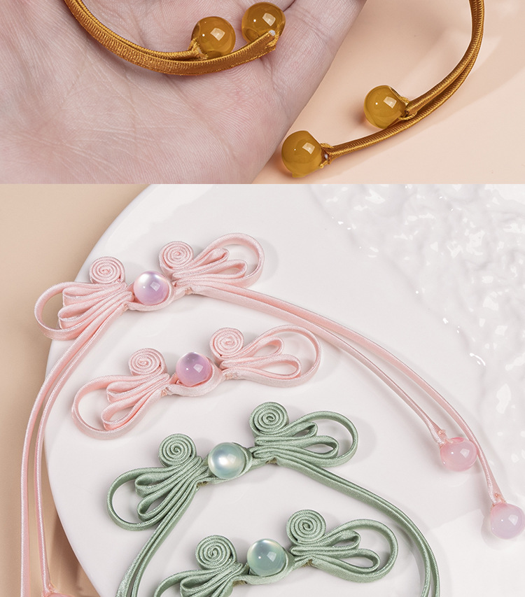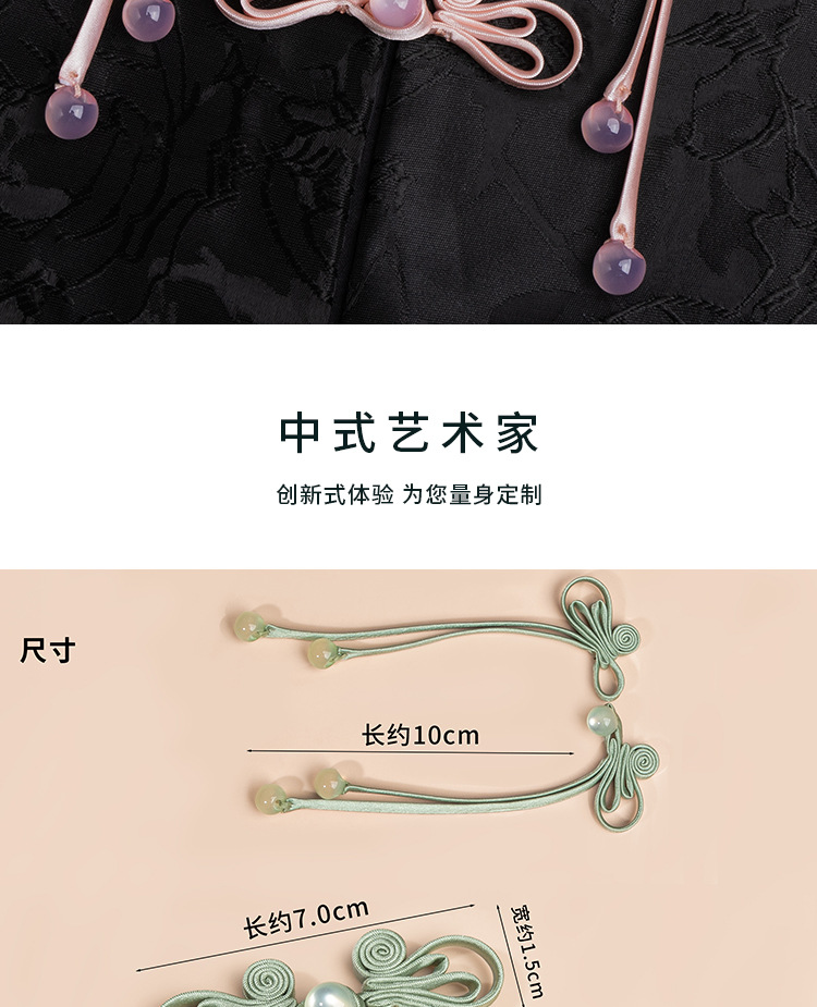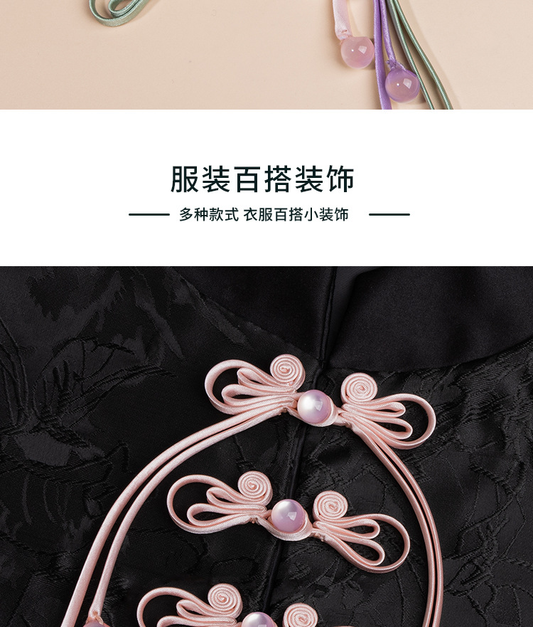 旗袍盘扣长尾玉珠兔耳国风中式手工编织纽扣汉服装饰对扣玉兔扣子