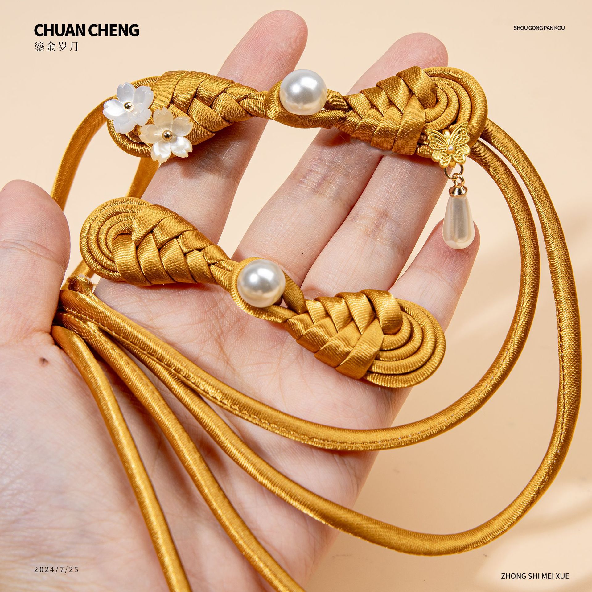 チャイナドレス盤ボタン新中国式手作り真珠桃心蝶長尾流蘇布ボタン唐装漢服国風ボタン