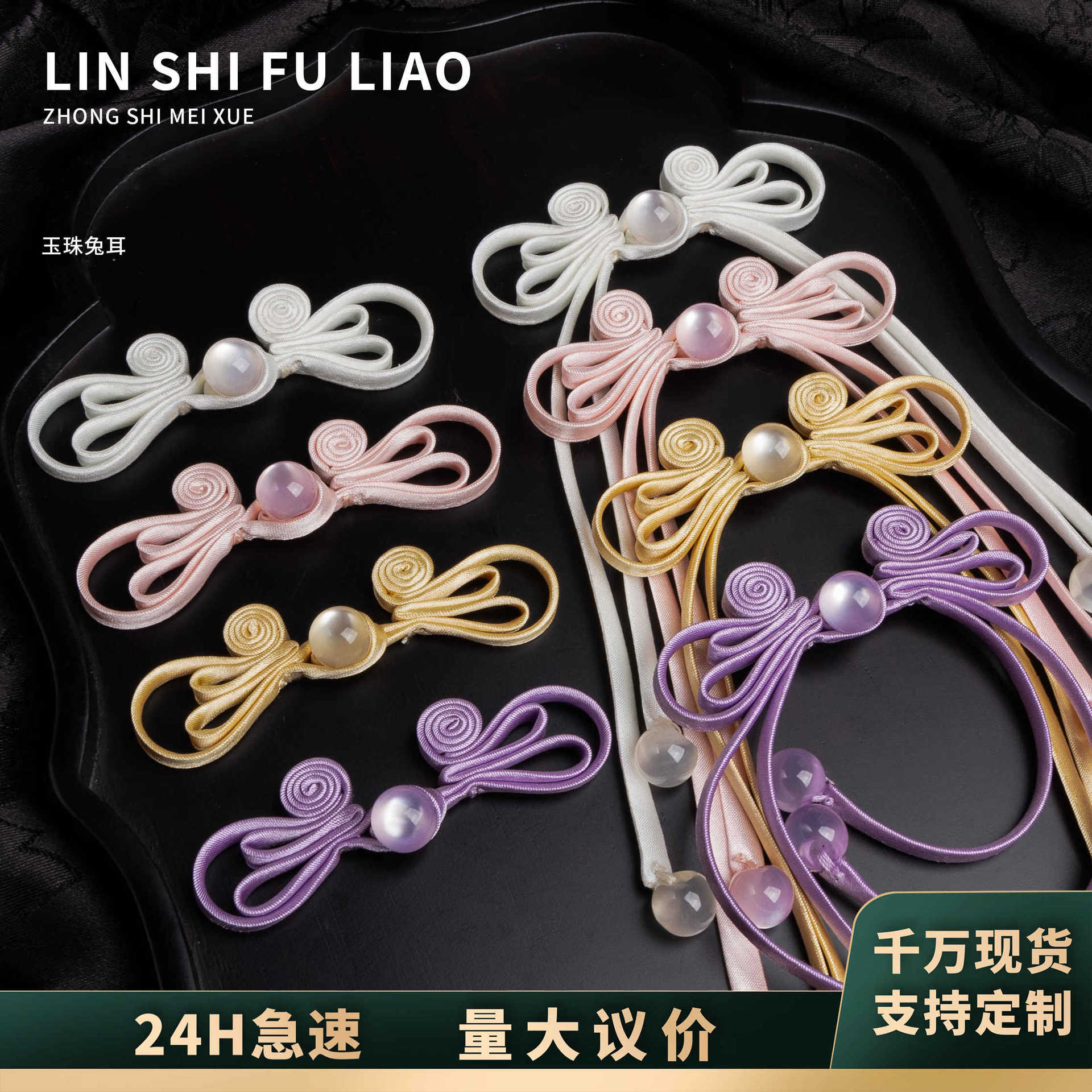 林氏旗袍盘扣长尾玉珠兔耳手工编织中式纽扣汉服装饰对扣玉兔扣子