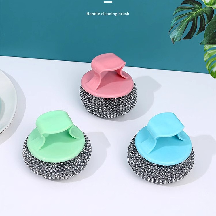 スチールボールが落ちない大サイズの商用ブラシ鍋ボール洗浄ボール柄付き鍋ボールキッチン食器洗浄家庭用鉄線ボール