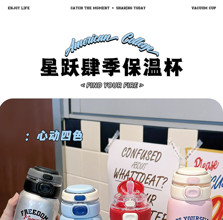 ポータブルカップ女性シンプル高颜値学生かわいいカップ大容量304家庭用ステンレス保温カップ