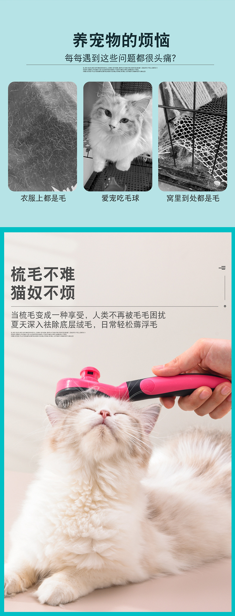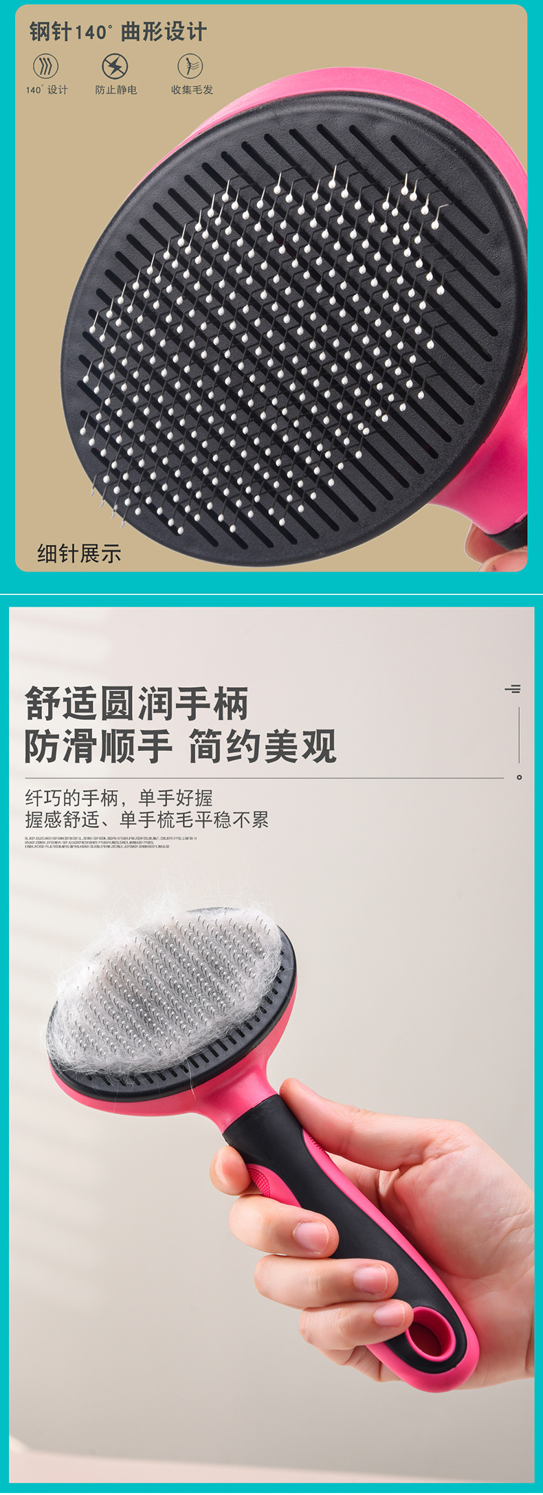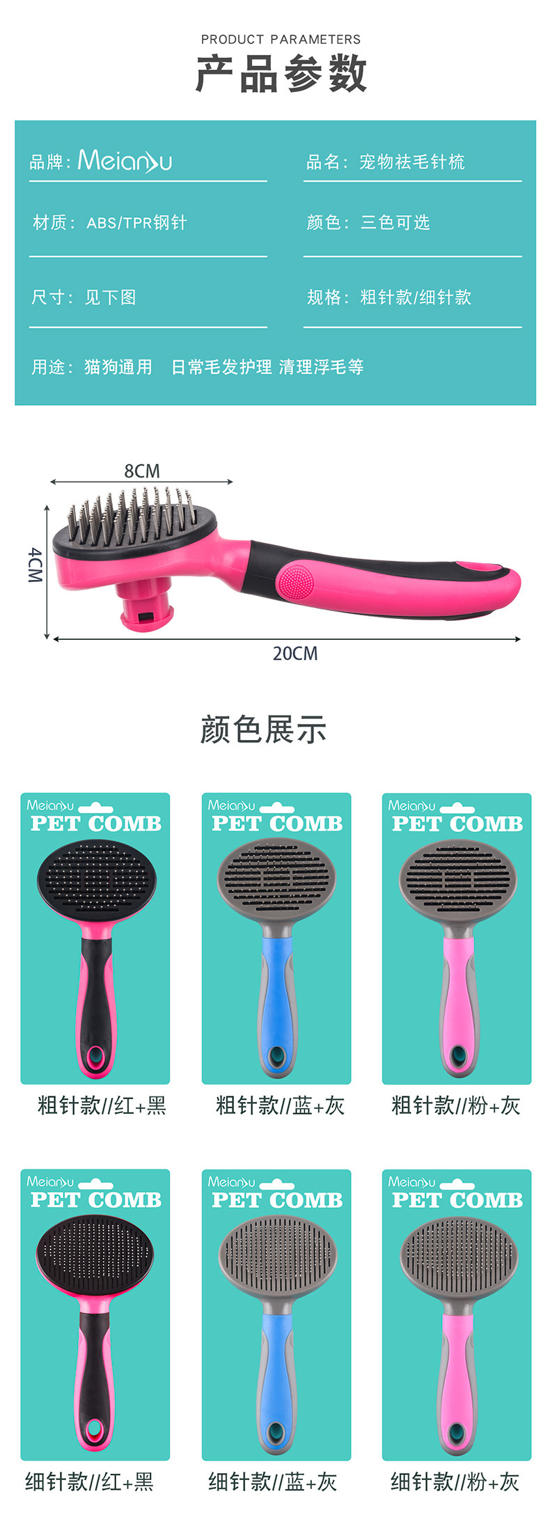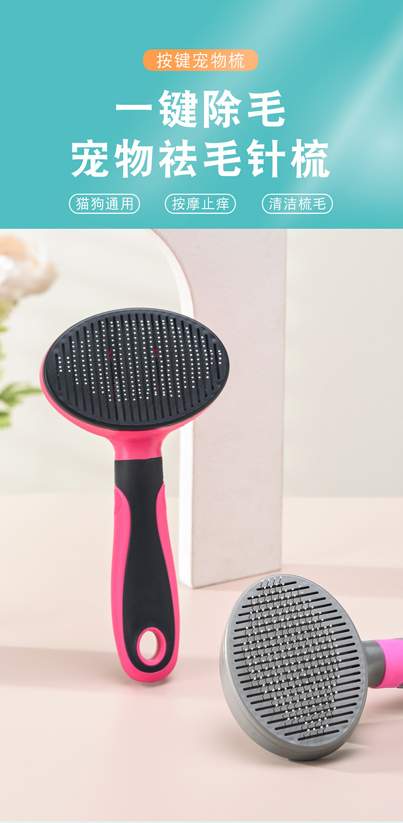 Meianju 楕円形ボタンニードルコームポータブルクリーニングマッサージコーム入浴家庭用浮き毛除去ペット用品