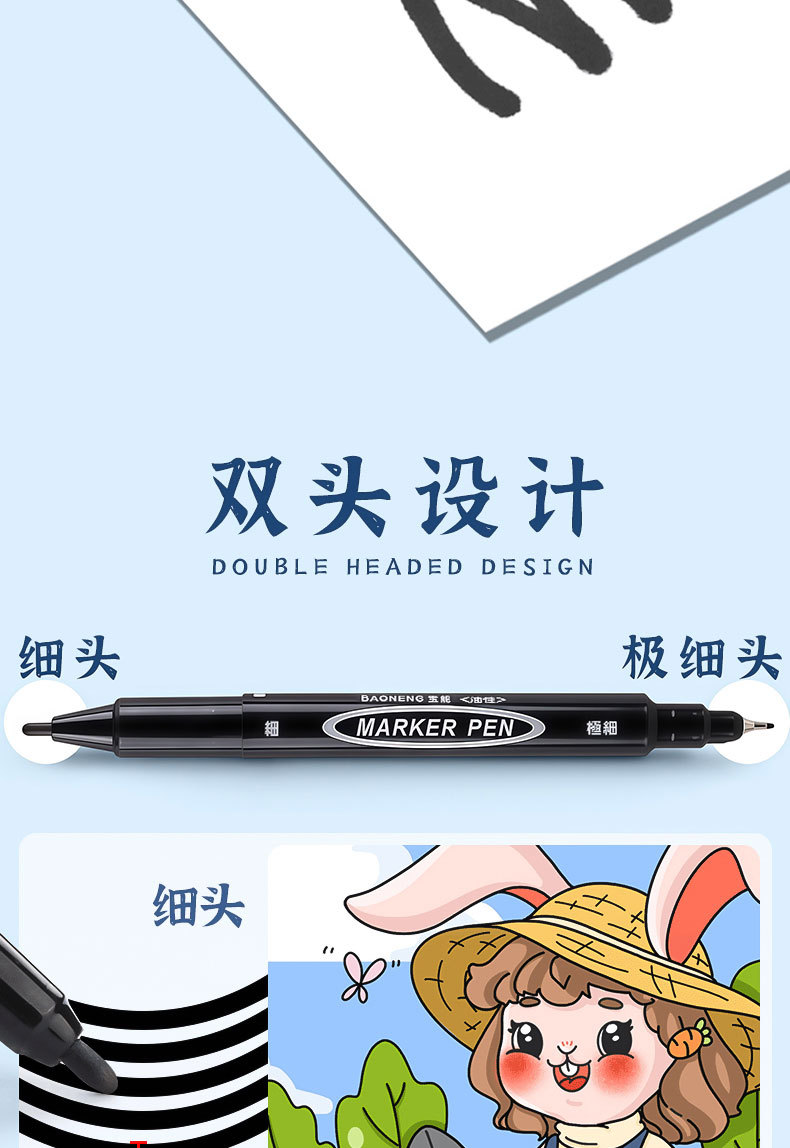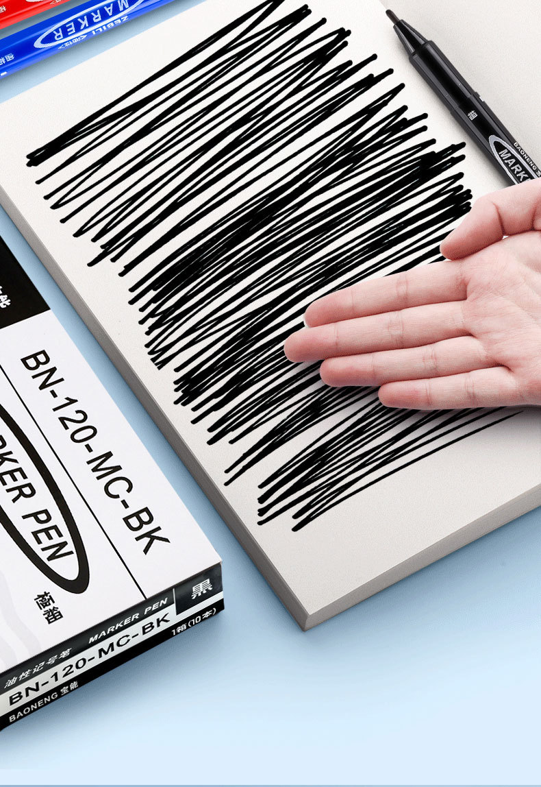 Baoneng マーカー黒双頭耐摩擦油性ペン小さな卸売絵画フックラインペン
