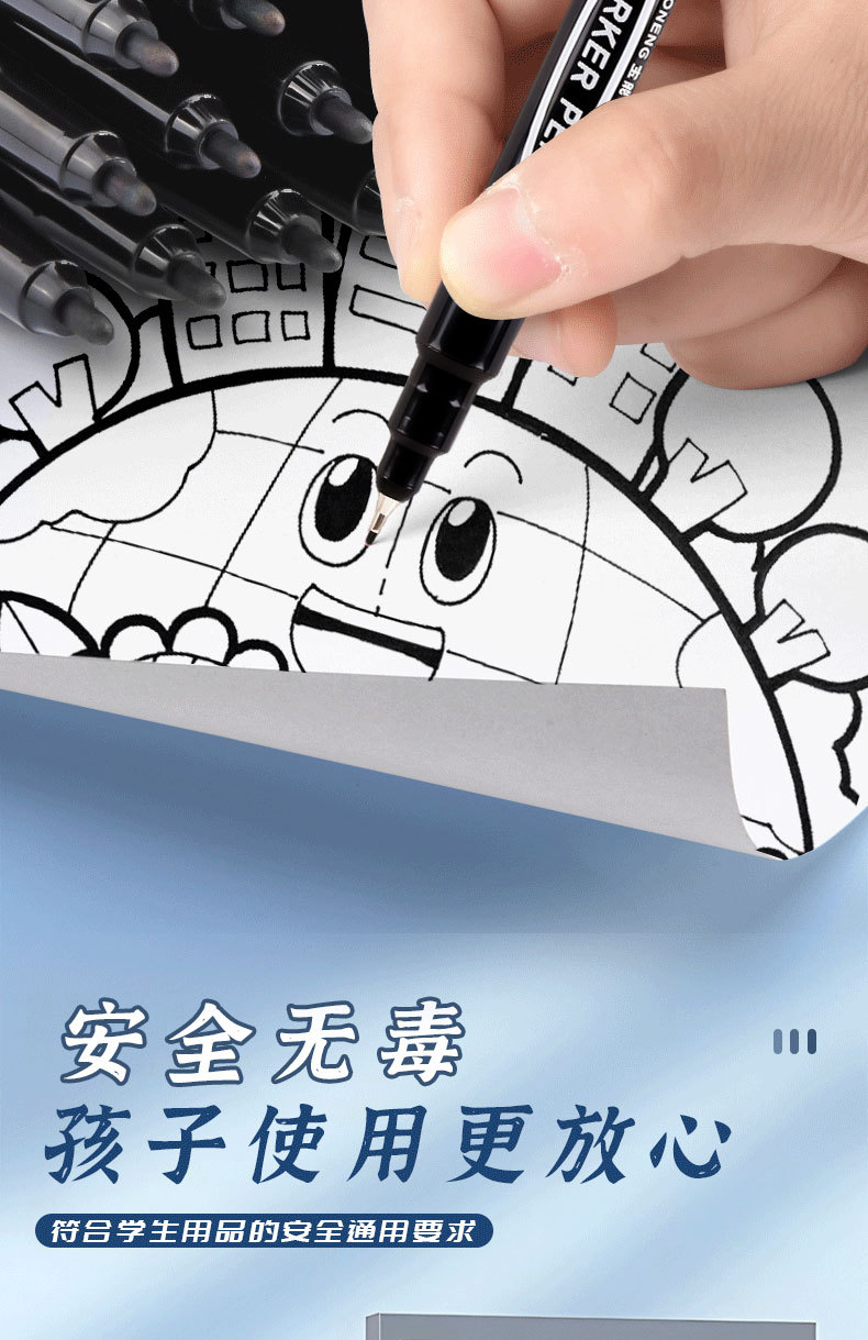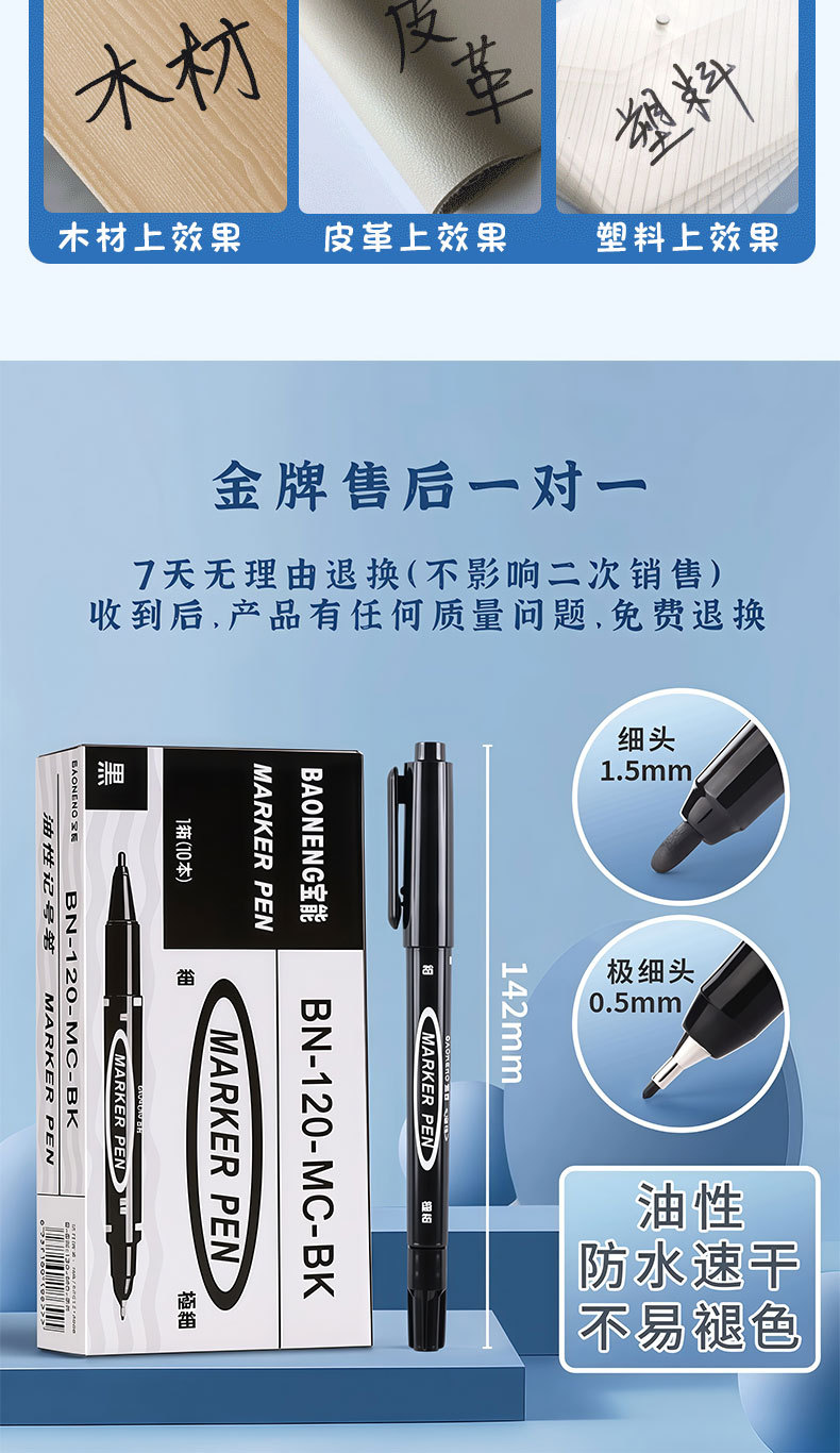 小さなダブルヘッドマーカー油性120黒速干マークペン大容量美术絵画ラインペン卸売