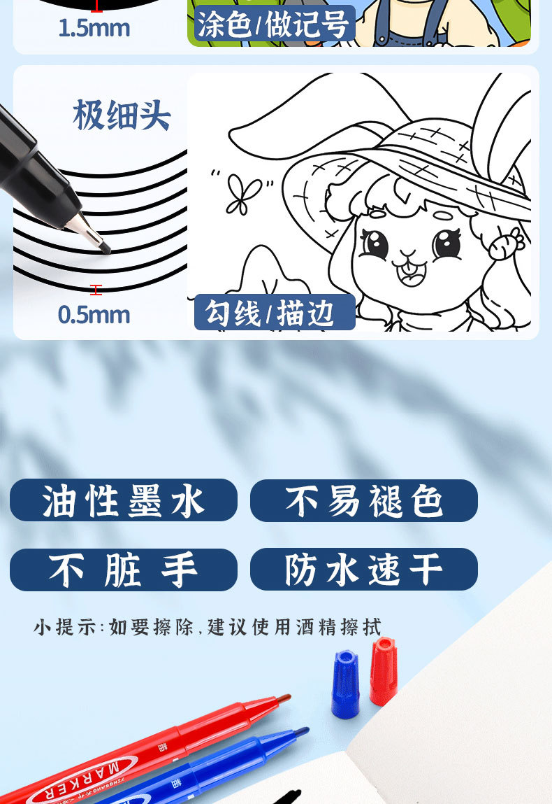 小双头勾线笔油性记号笔黑色速干防水不掉色美术绘画双头描边笔