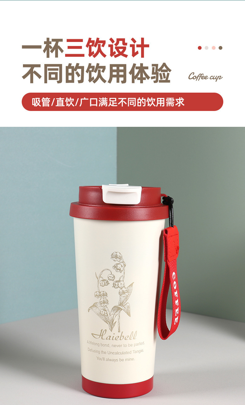 316ステンレス保温カップ二重飲み随行カップ高顔値ストローカップ鈴蘭コーヒーカップ携帯カップ