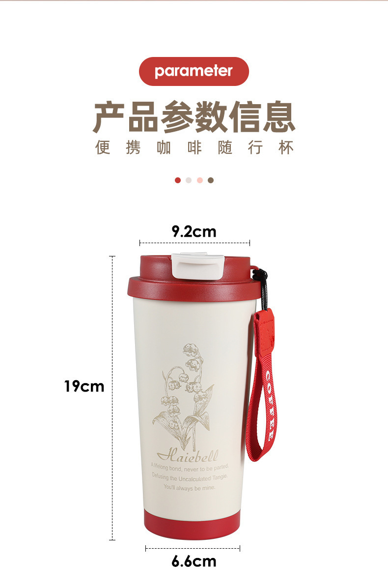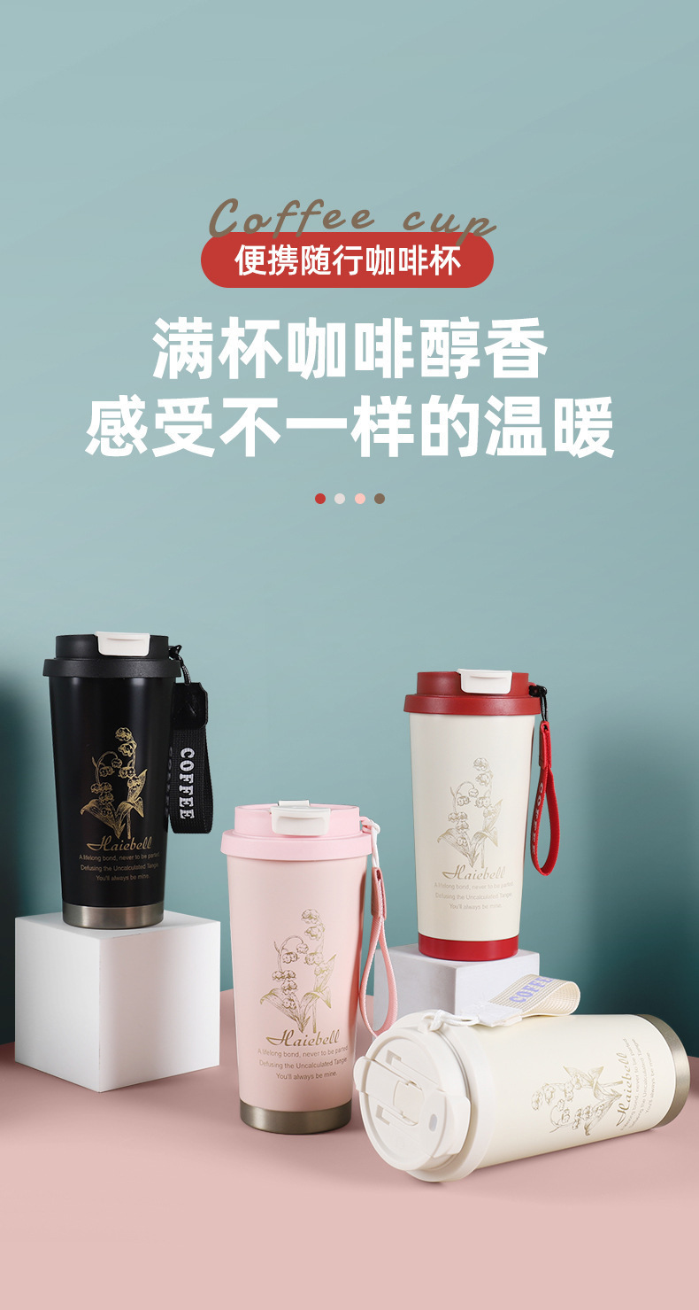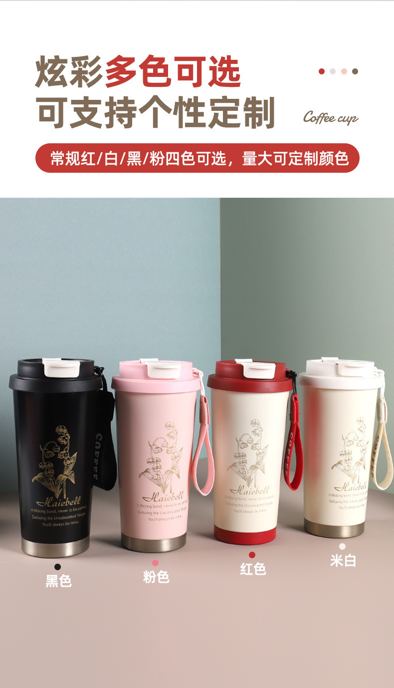铃兰咖啡杯316不锈钢保温杯高颜值男女便携水杯车载礼品保温杯