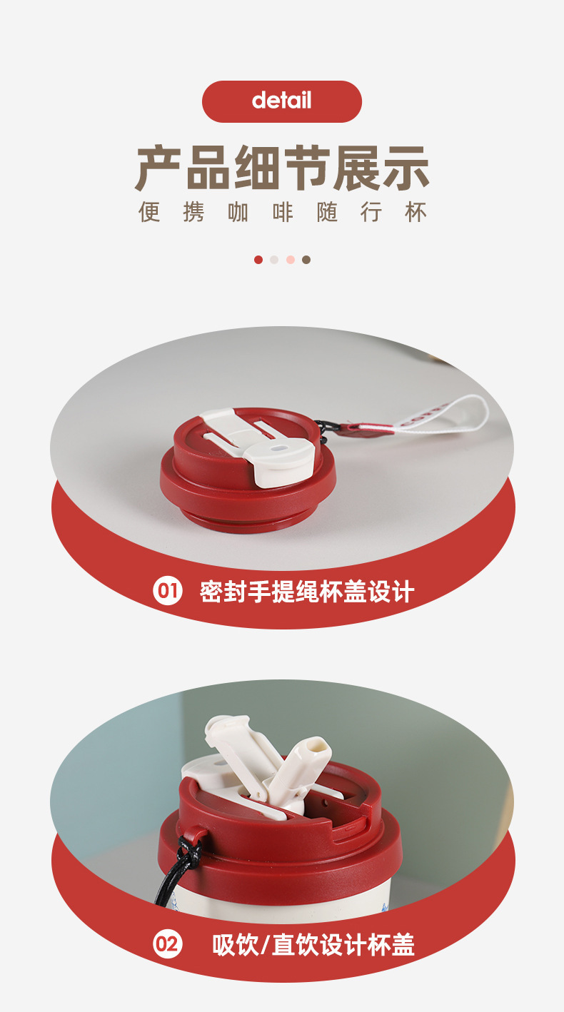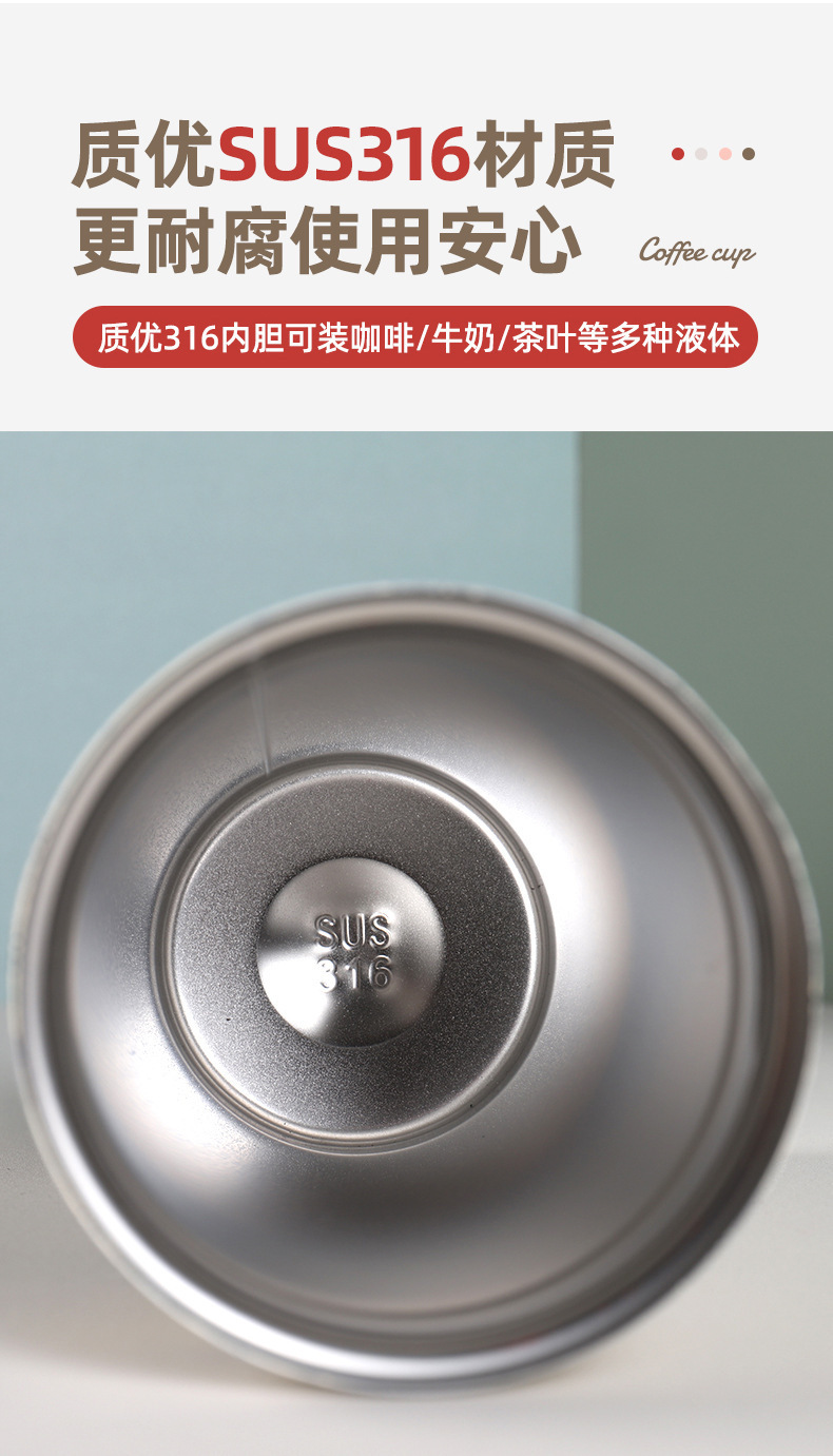 316不锈钢咖啡杯保温杯带提绳双饮吸管杯高颜值真空双层车载水杯