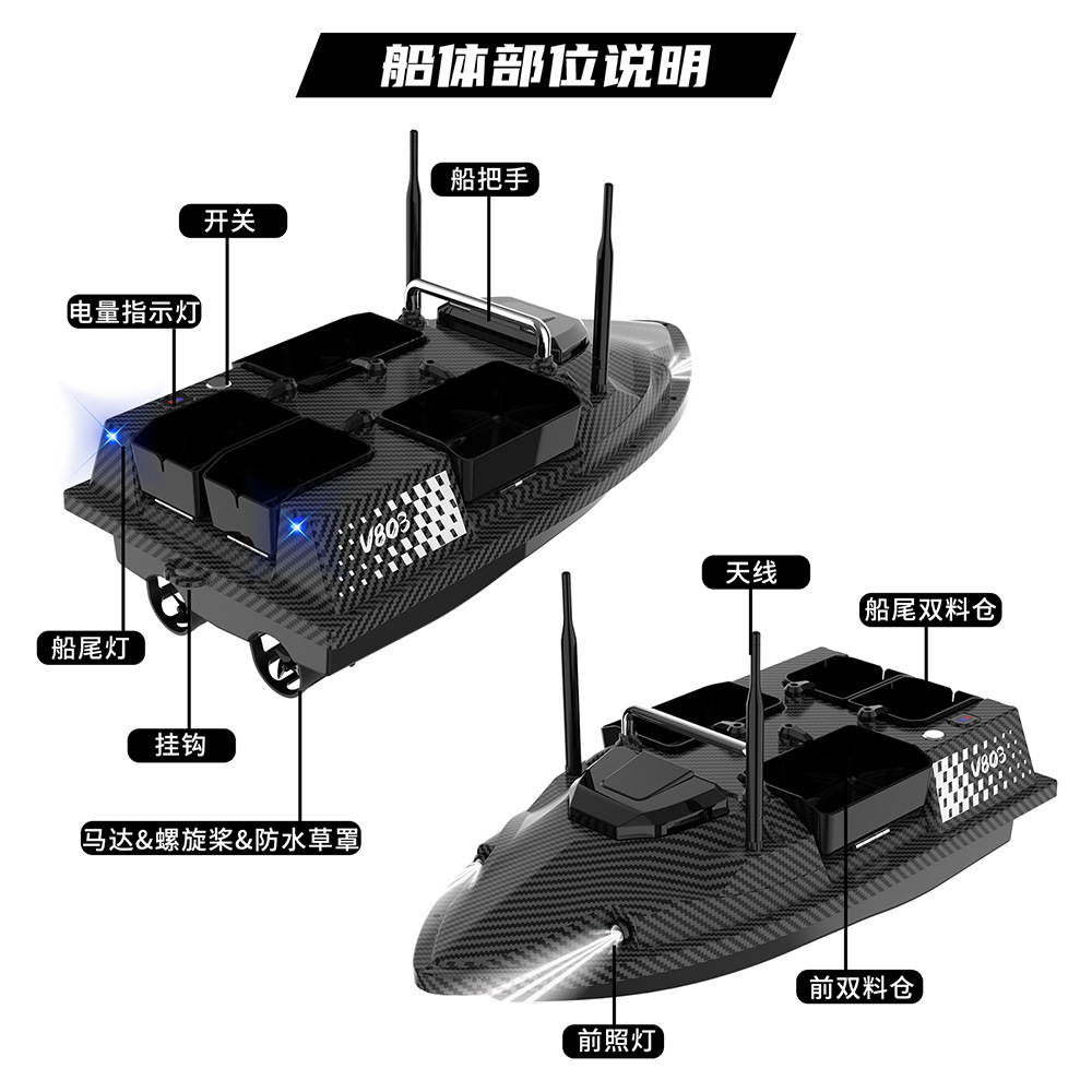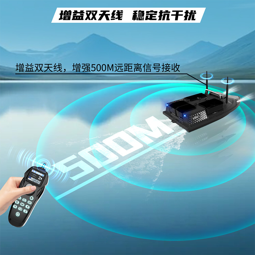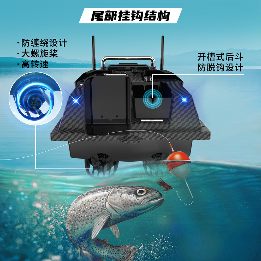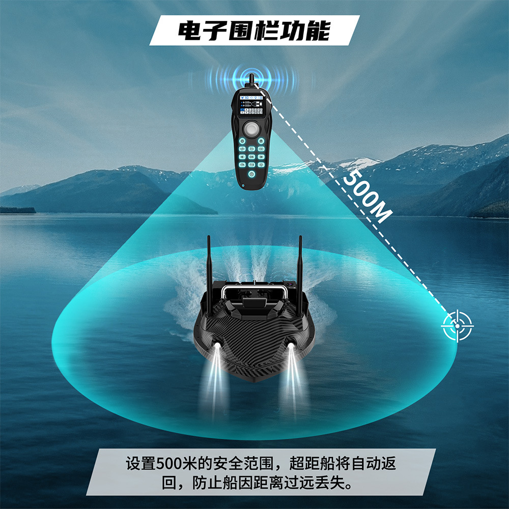 精准卫星定位技术的虚拟锚定系统,通过GPS/北斗定位模块实时监测位置。当打窝船移动超出预设定点时,系统自动触发警报或控制电机返回,实现“虚拟锚定”效果。