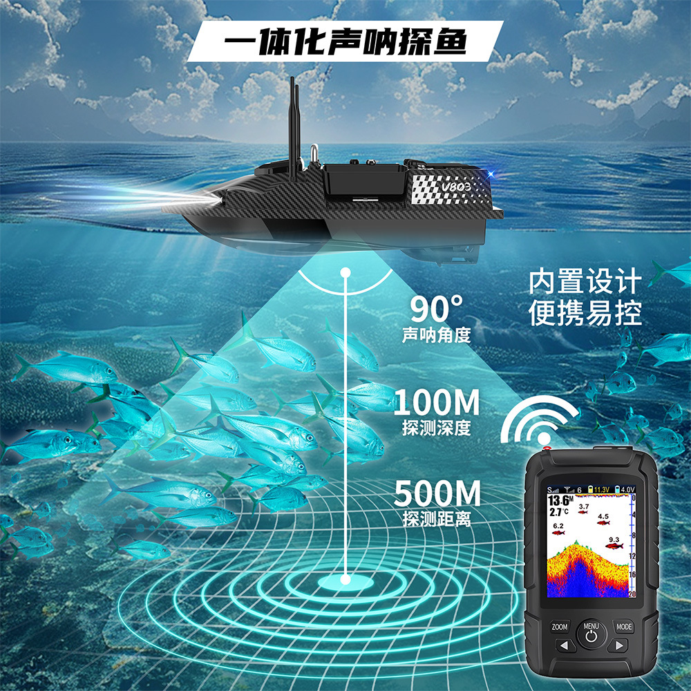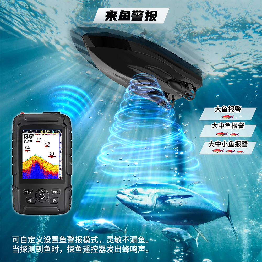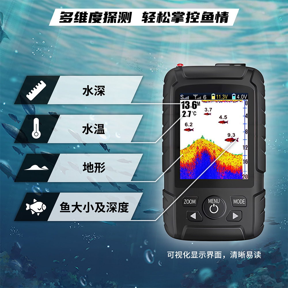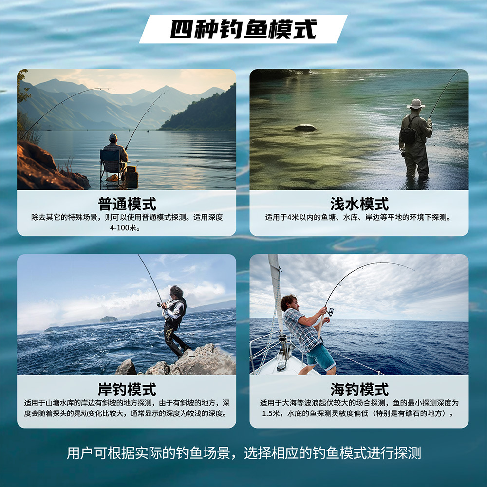 500米探测距离,100米探测深度,90°探测角度,多维度探测,轻松掌握鱼情