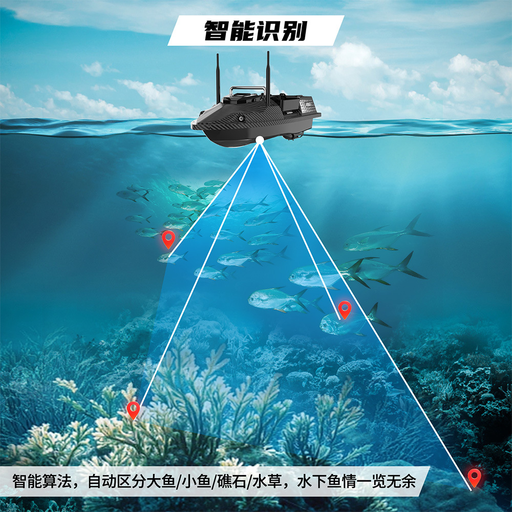 核心卖点:智能4钓场200定位点/四料仓双天线/内置声呐探鱼器