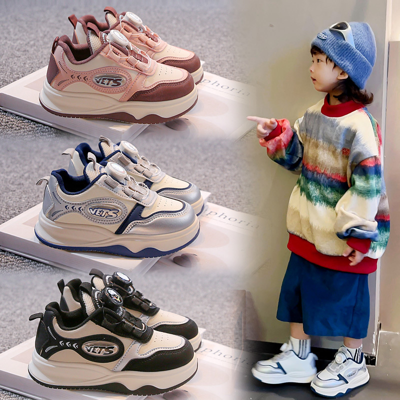 男の子用スポーツシューズ 2025 秋の新作黒子供用スニーカー女の子用靴男の子用ボタンカジュアルシューズ