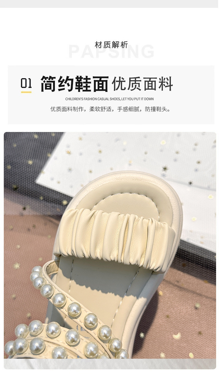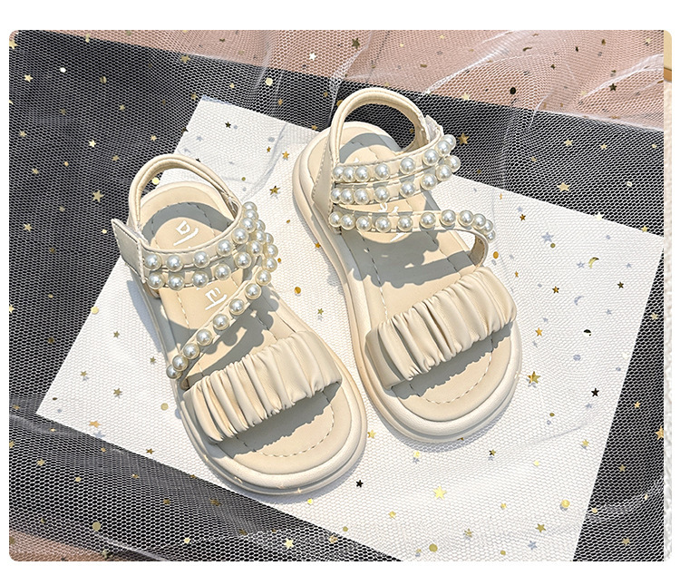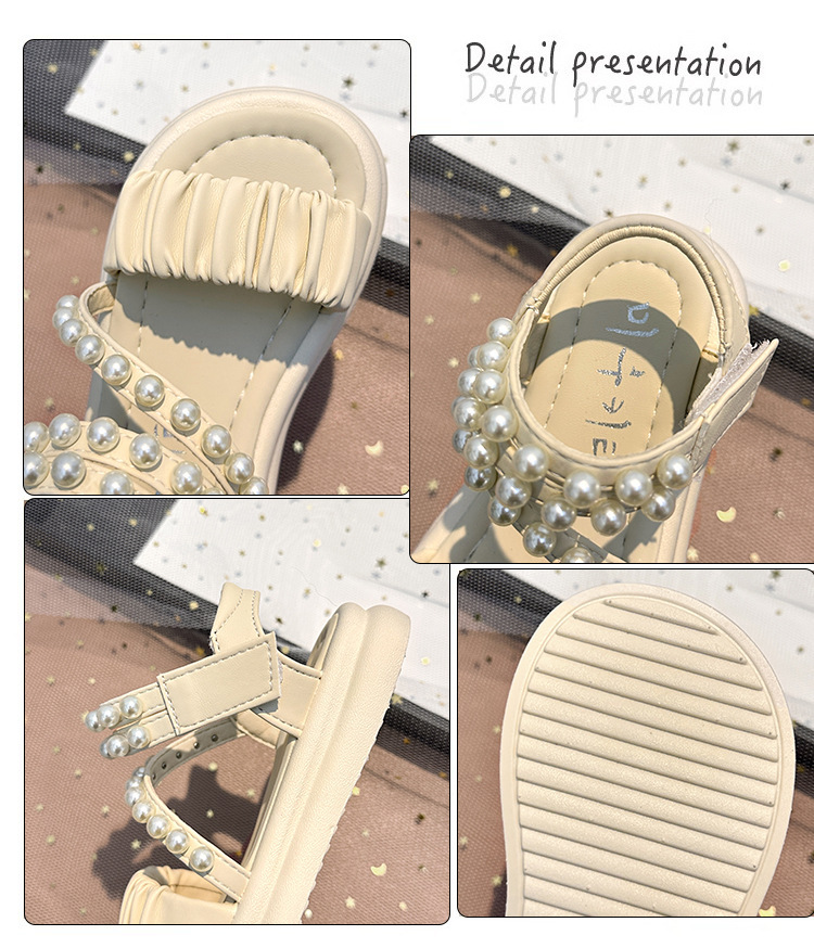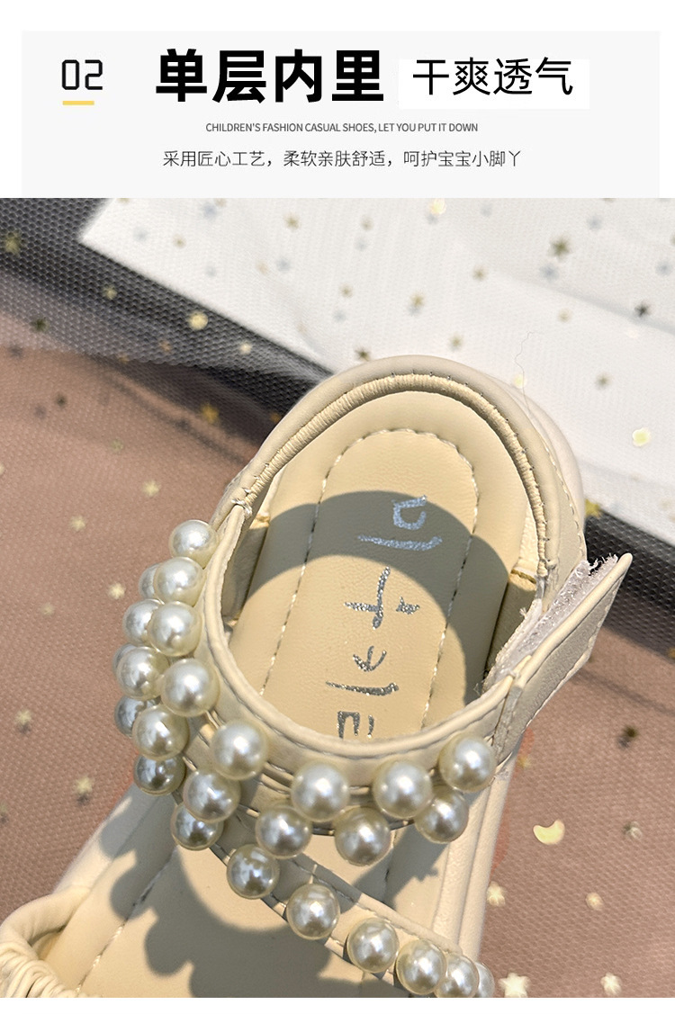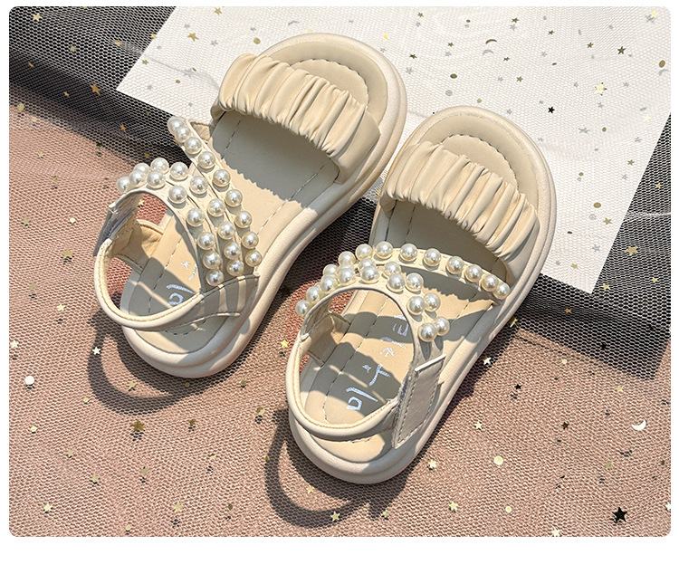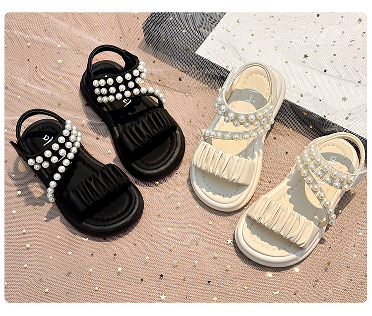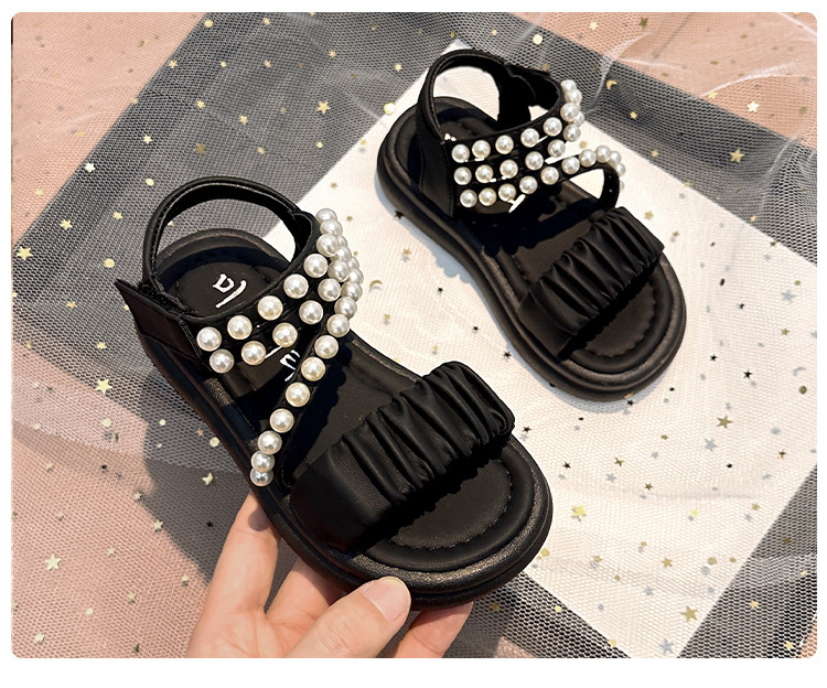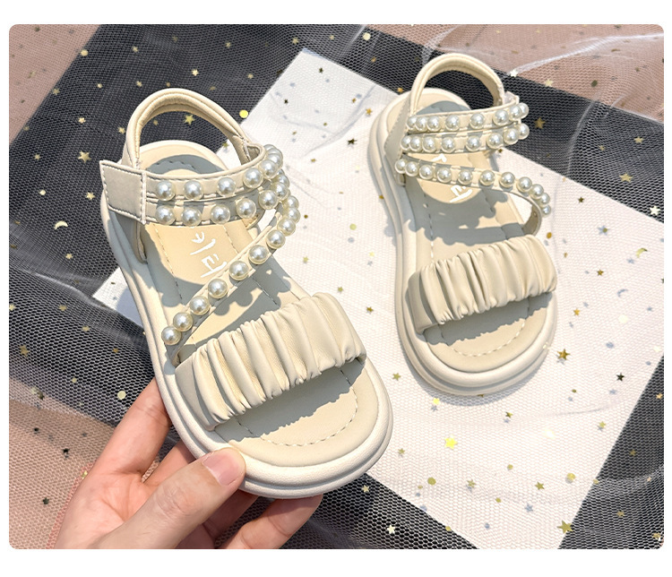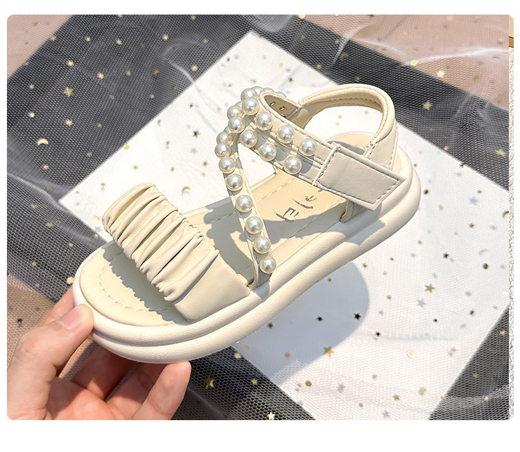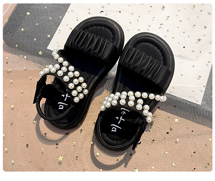 子供サンダル女の子 2025 夏の新女の子プリンセスサンダル中型および大型子供用パールソフトソールスポーツビーチシューズ