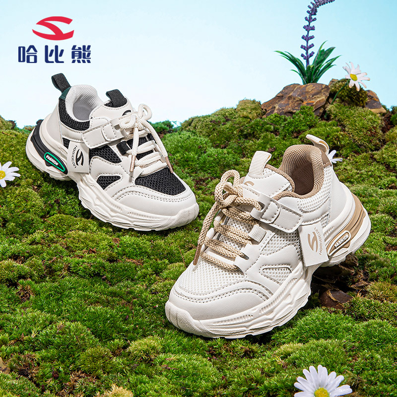 ハビー熊双網春回転ボタン少女スポーツシューズ男児耐摩耗タイヤ底カジュアルシューズ