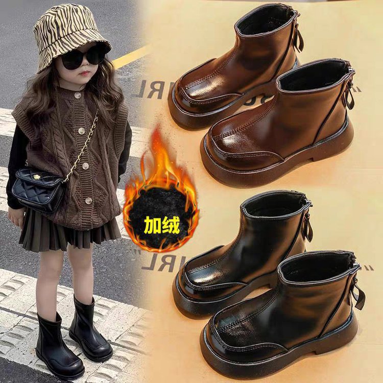 ボーイズマーティンブーツ 2024 韓国版秋の新作子供ベルベットレトロショートブーツ女の子ソフトソールファッショナブルなレザーブーツ
