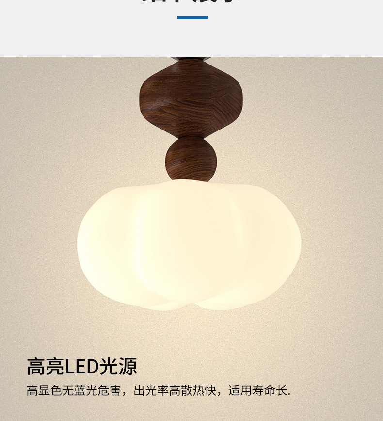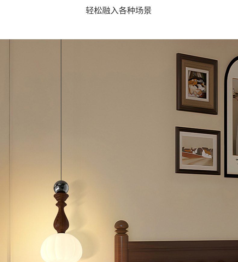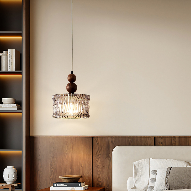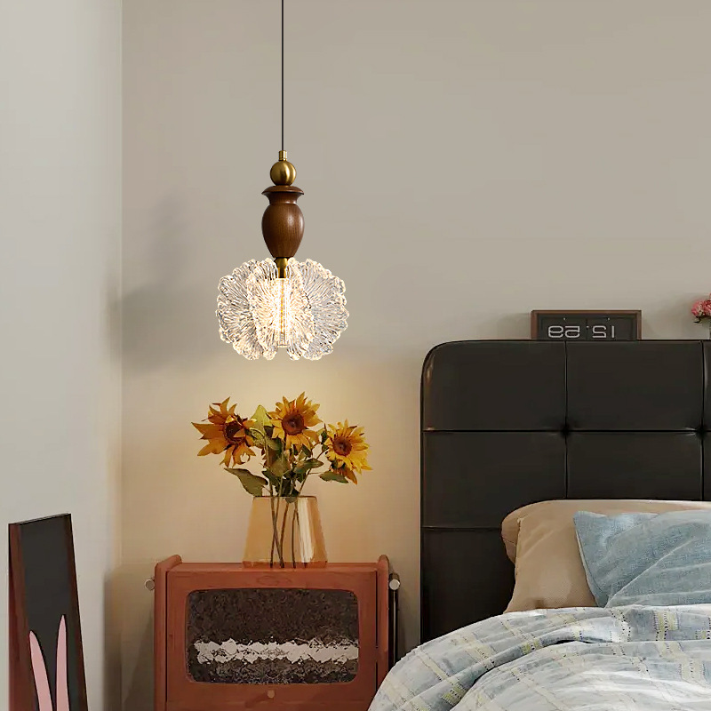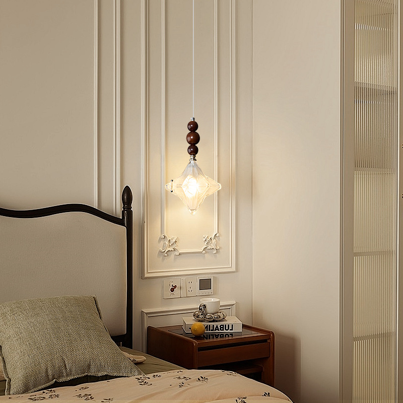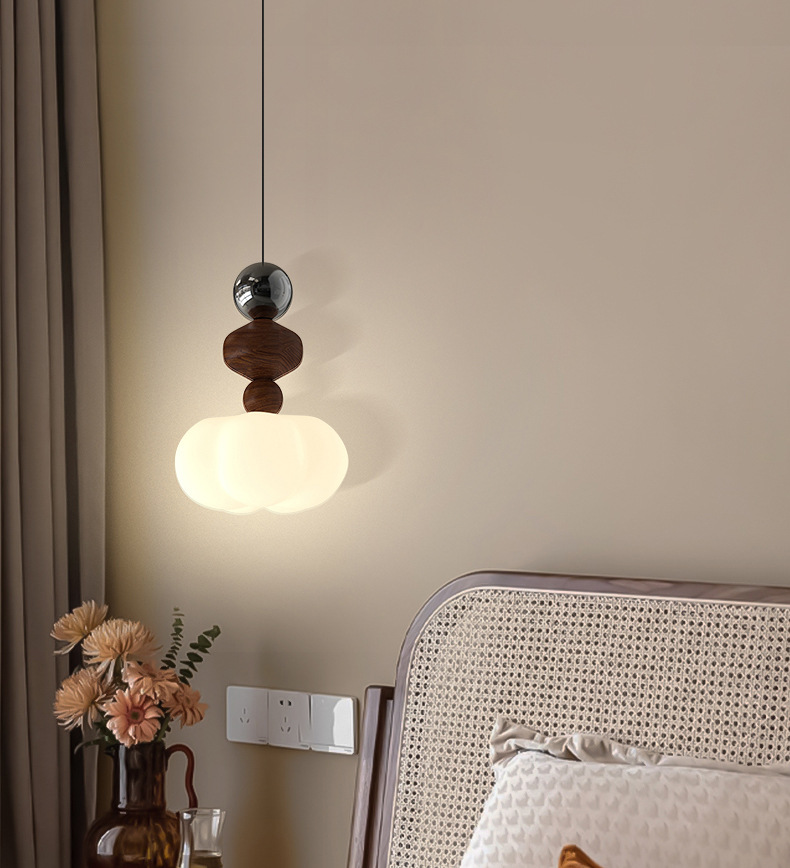 吊灯法式轻奢氛围感小夜灯中古侘寂风复古胡桃木色卧室床头吊线灯