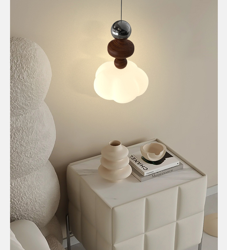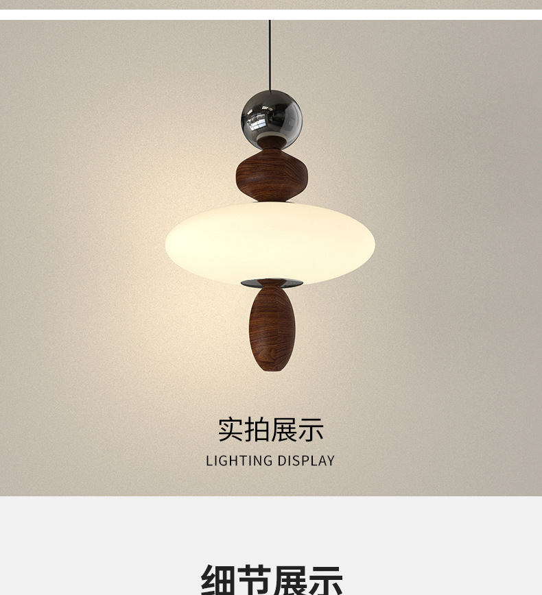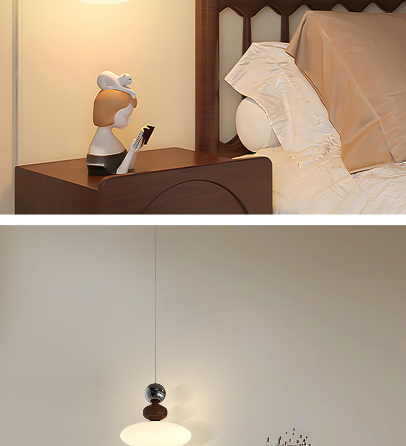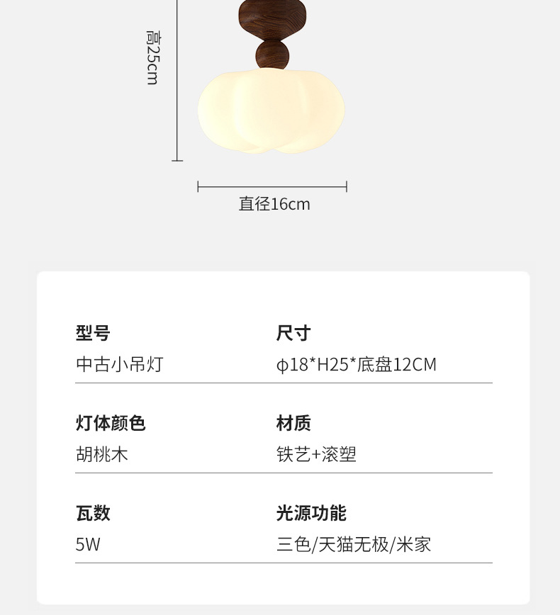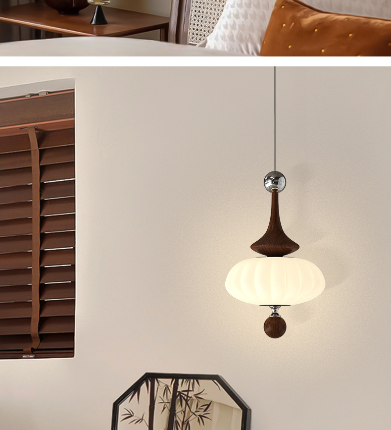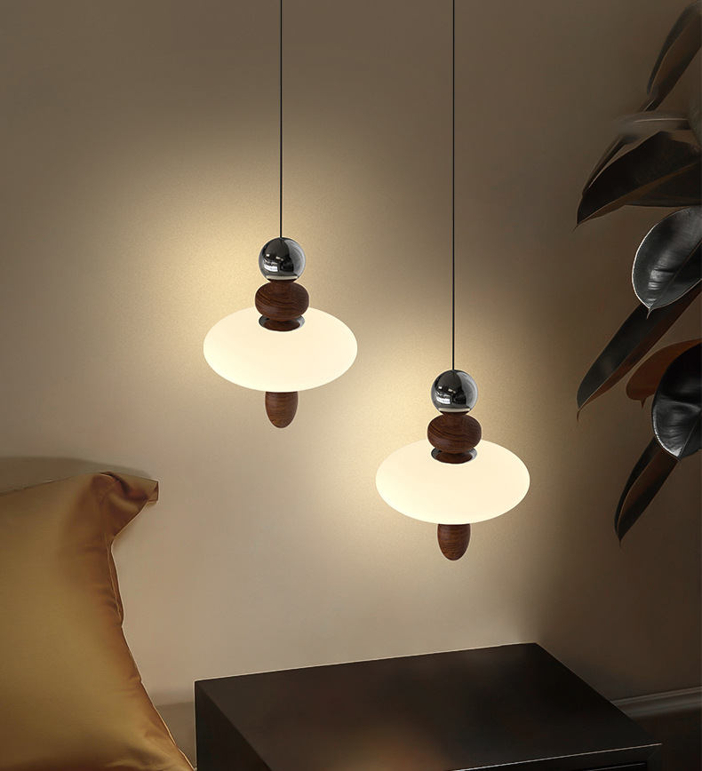 吊灯法式轻奢氛围感小夜灯中古侘寂风复古胡桃木色卧室床头吊线灯