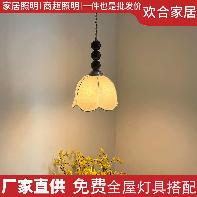 中古风卧室床头小吊灯高级感法式复古餐厅过道新中式单头长吊线灯