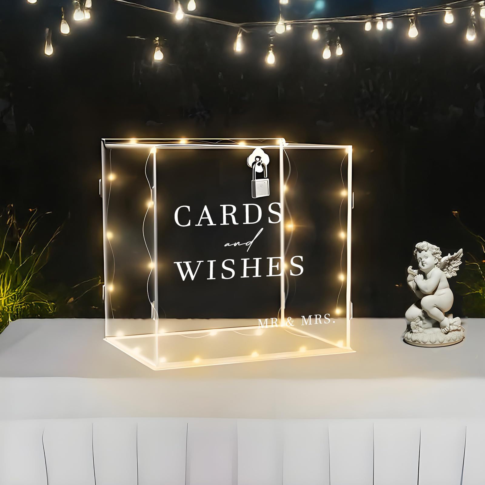 小さいサイズのつや消しのアクリルの結婚式のカードの箱は明かりがついています。