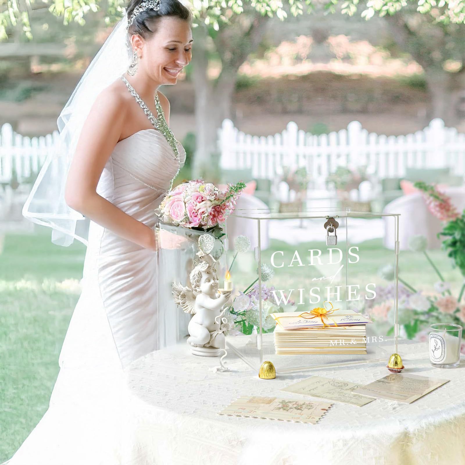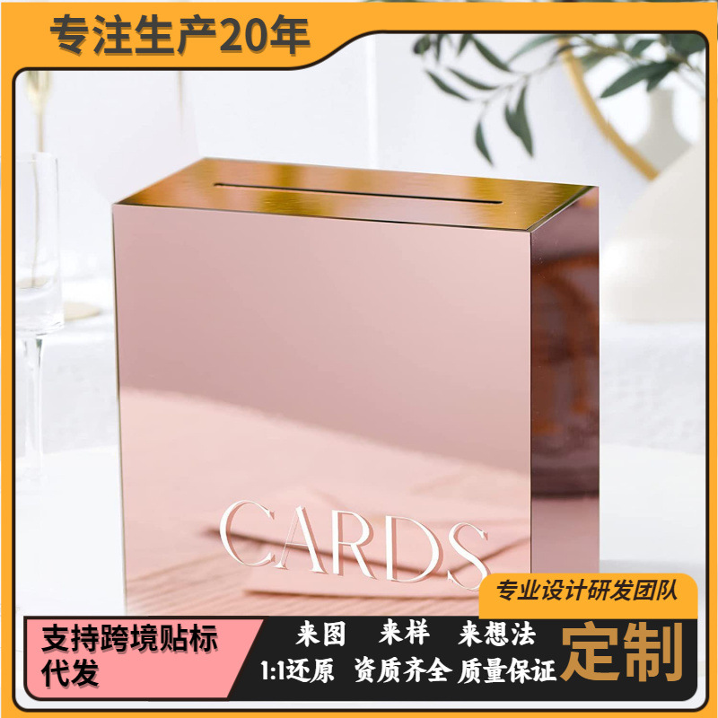 跨境亚马逊亚克力婚礼卡片盒婚庆收集信封祝福语纯白色拆装展示盒