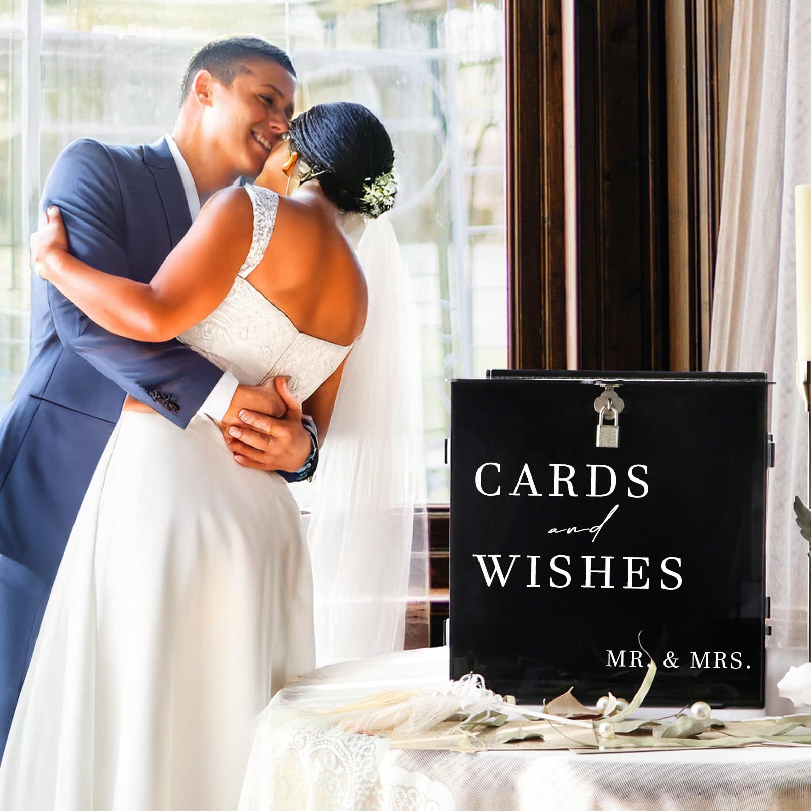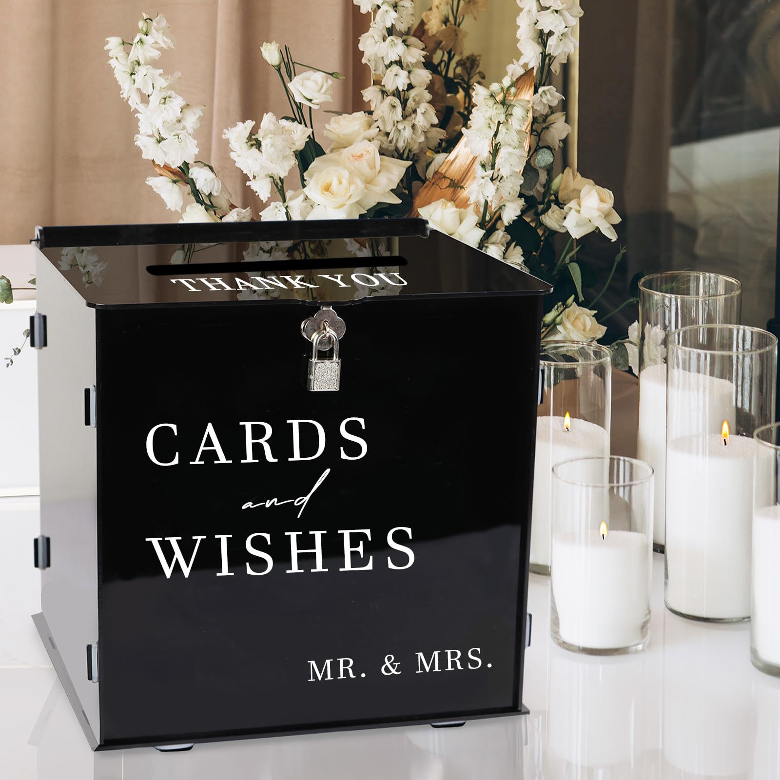黑色亚克力婚礼卡片盒组装带锁卡片盒收纳盒亚克力婚礼卡盒