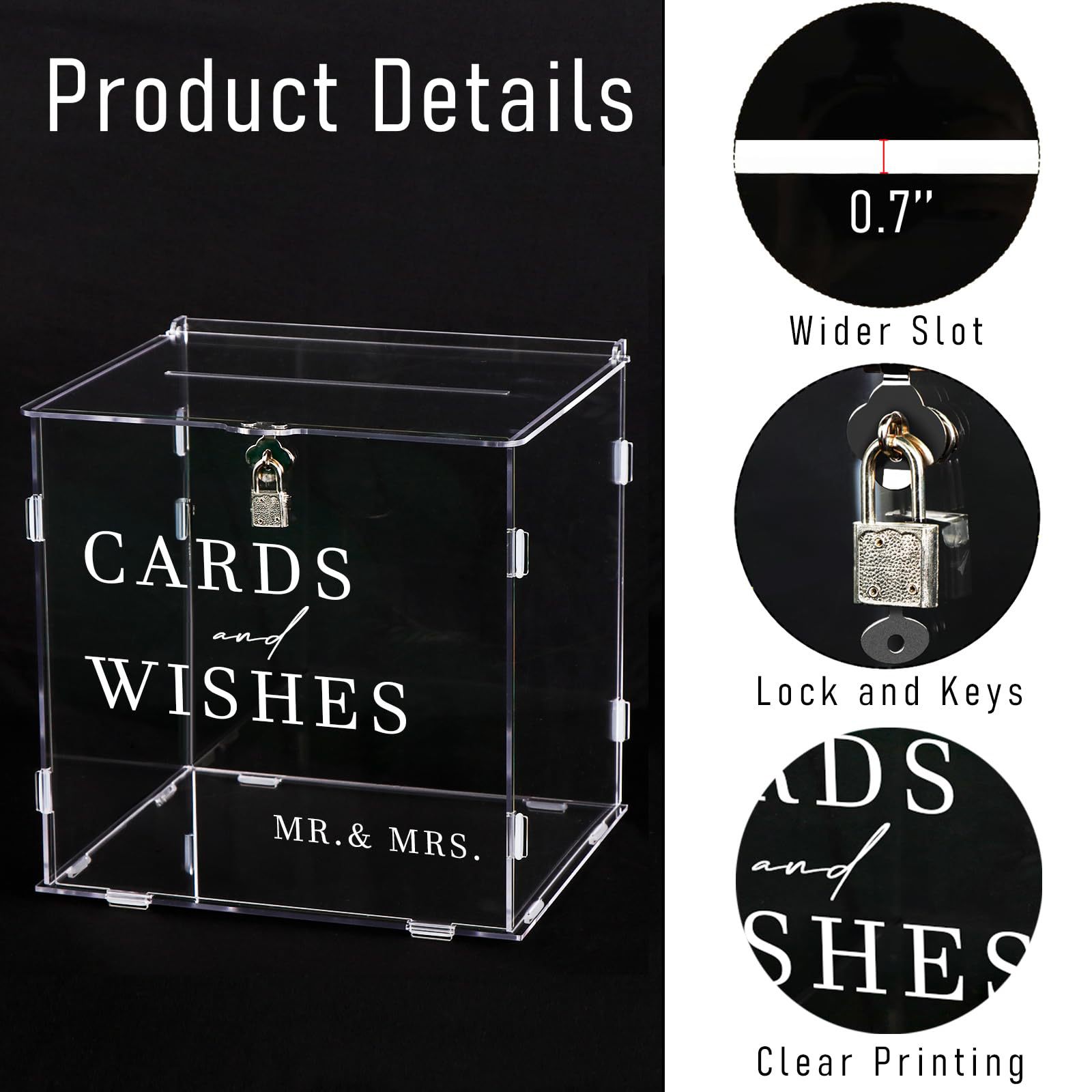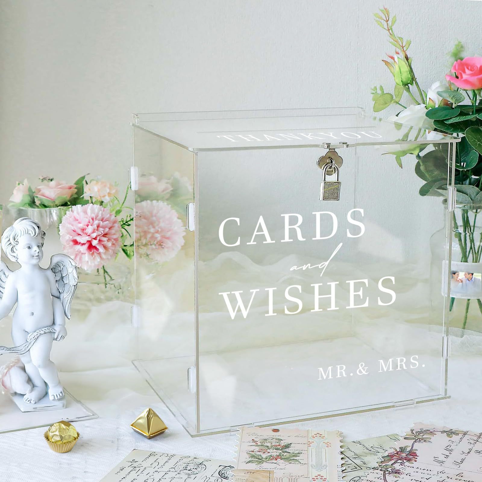 アクリル製組み立て式収納ボックス、ロックとスロット付きの透明なウェディングカードボックス、ウェディング封筒ボックス、ギフトカードボックス