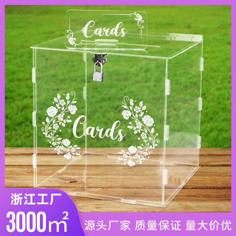 编443号婚礼招待会用卡盒透明卡盒带锁亚克力派对礼品祝福卡箱