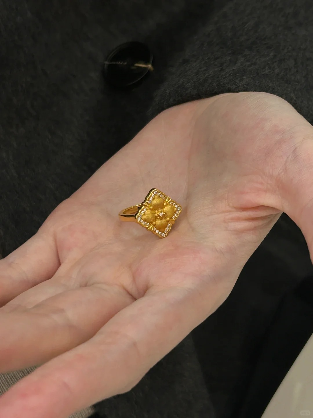 小红书爆款新中式复古女轻奢中古轻奢风布契拉丝满钻高级食指戒