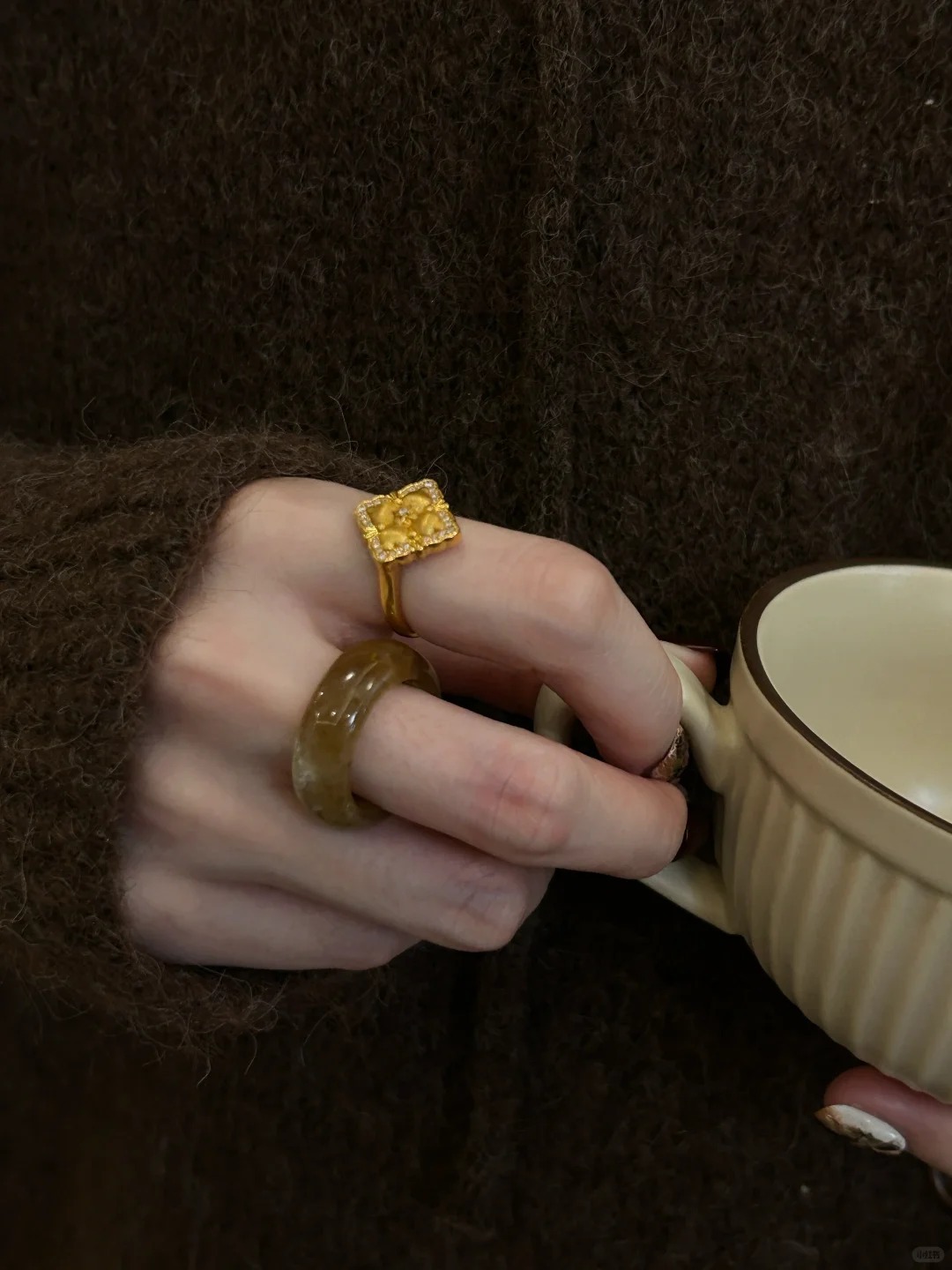 小红书爆款小清新金色少女魔法小众复古高级开口戒指彩宝轻奢指环