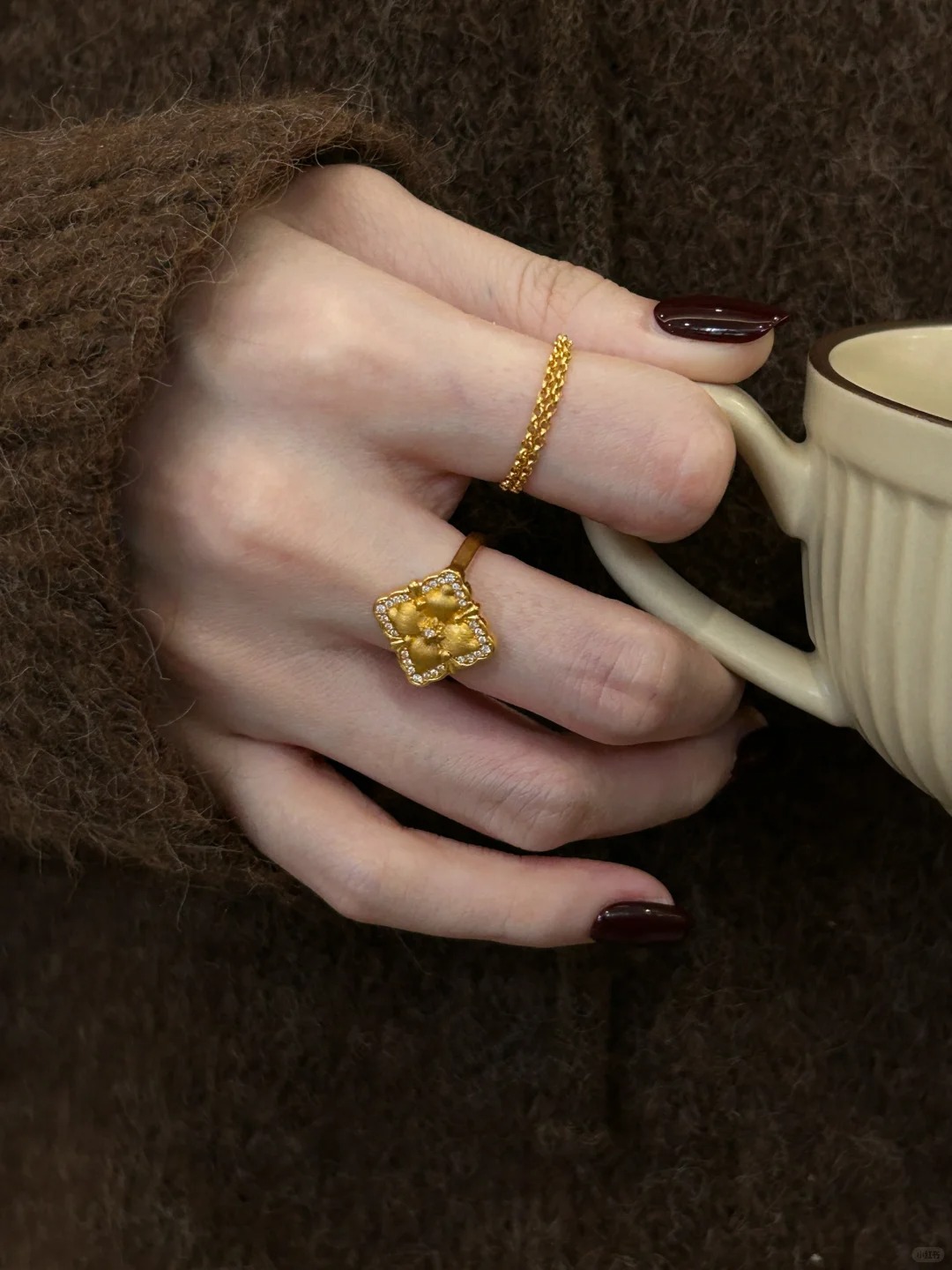 小紅書の新型アイリスの透かし彫りの指輪2024ファッションの軽豪華な大衆は個性の気質を設計します。
