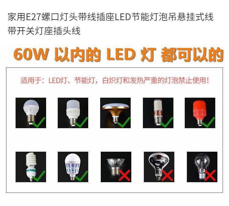 E27ねじ口ランプ線ランプ口線ランプヘッド付きプラグ延長線吊り下げ式ledランプねじ口ランプ座線