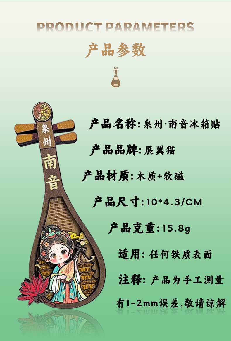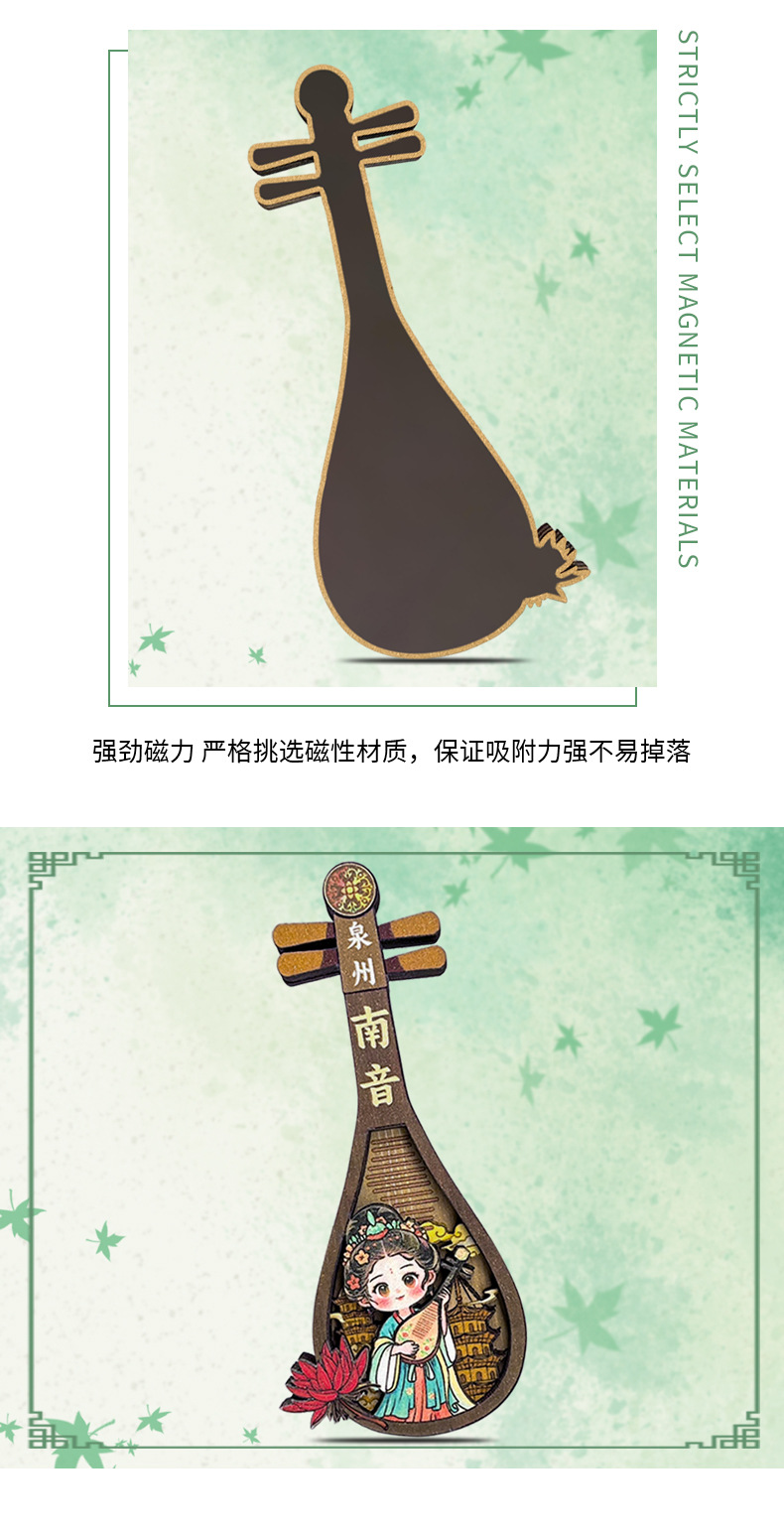 泉州木质冰箱贴南音文创乐器冰箱磁贴旅游纪念品礼品个性手工艺品