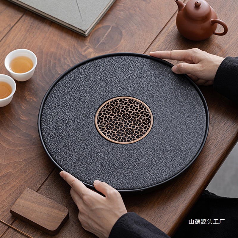 黒金磁器ラウンドティートレイドライバブルトレイ家庭用ライト高級茶海貯水排水トレイ新中国風ティーテーブルトレイ